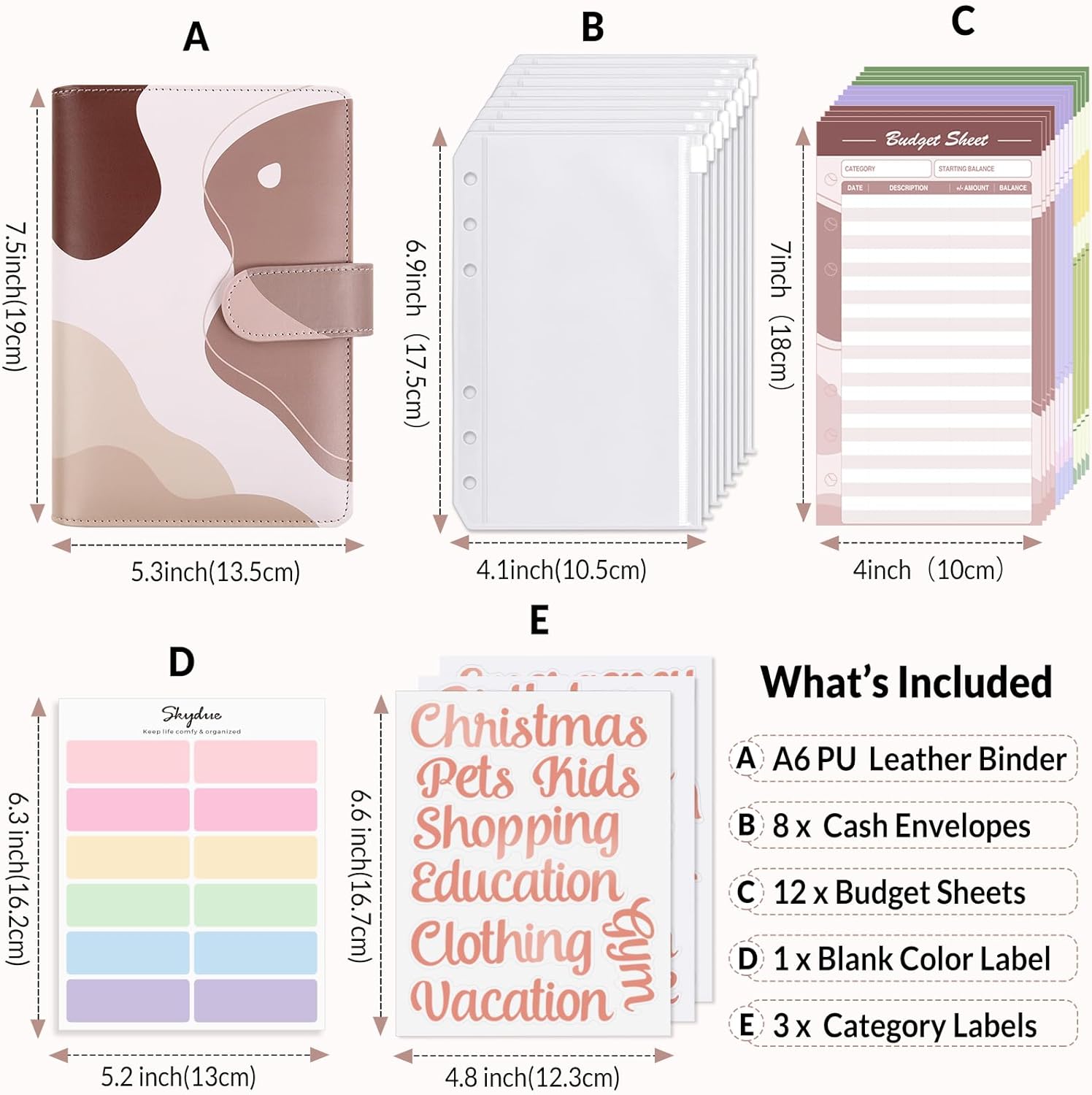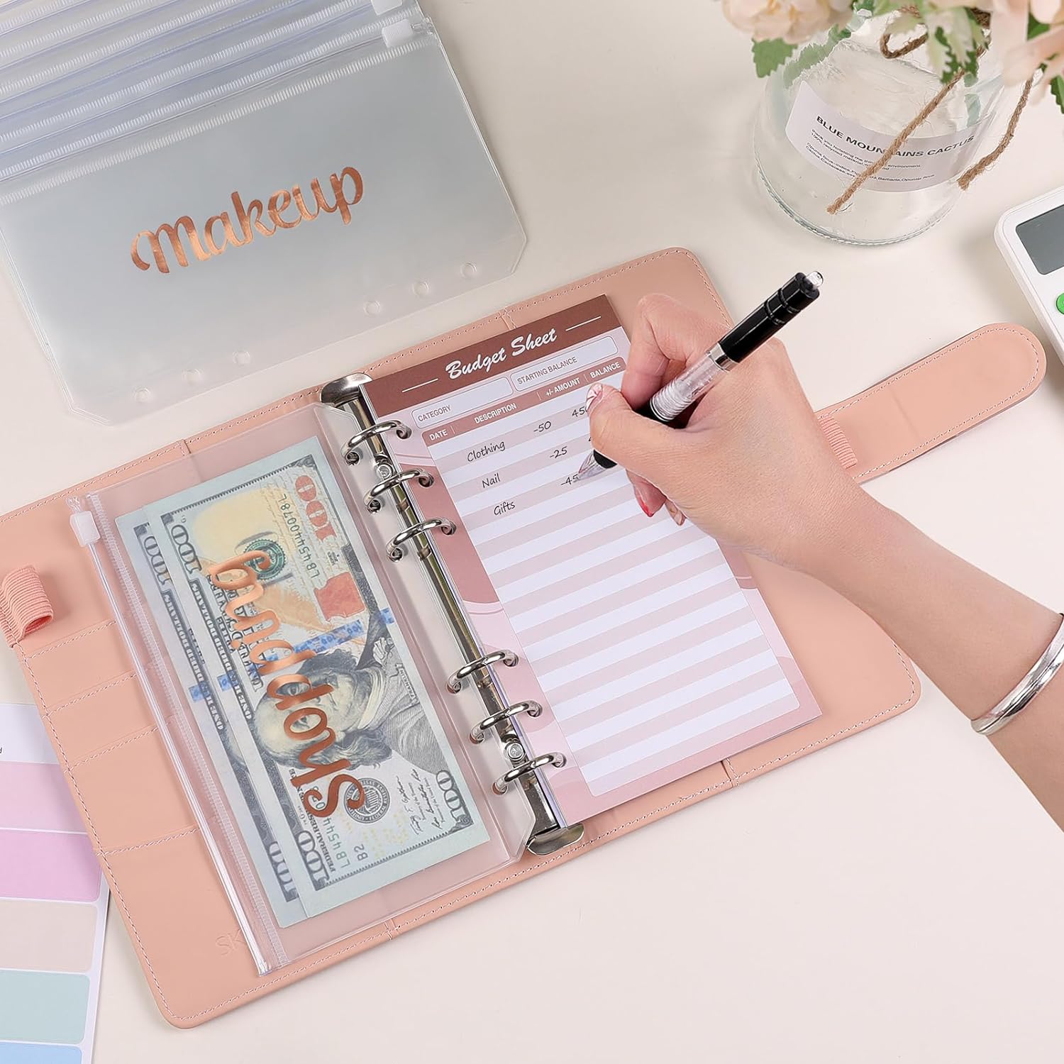 SKYDUE Budget Binder with Cash Envelopes & Expense Budget Sheets - Morandi Pink