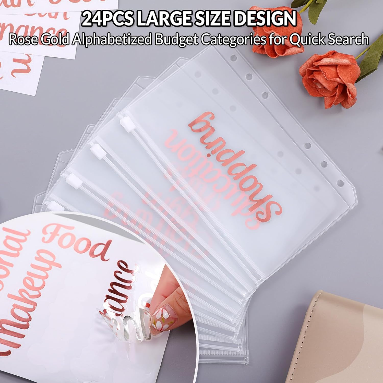 · Binder Pockets: 8PCS A6 zipper