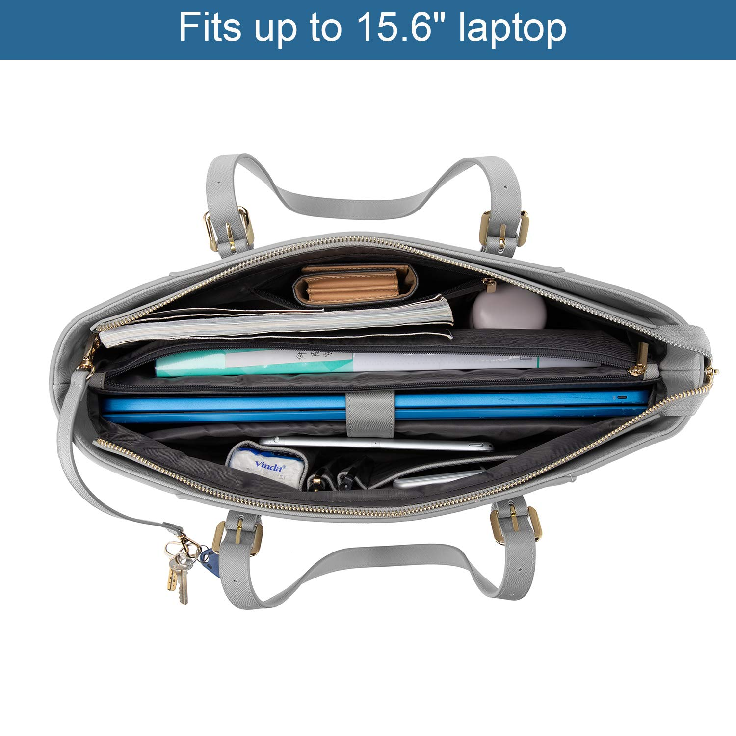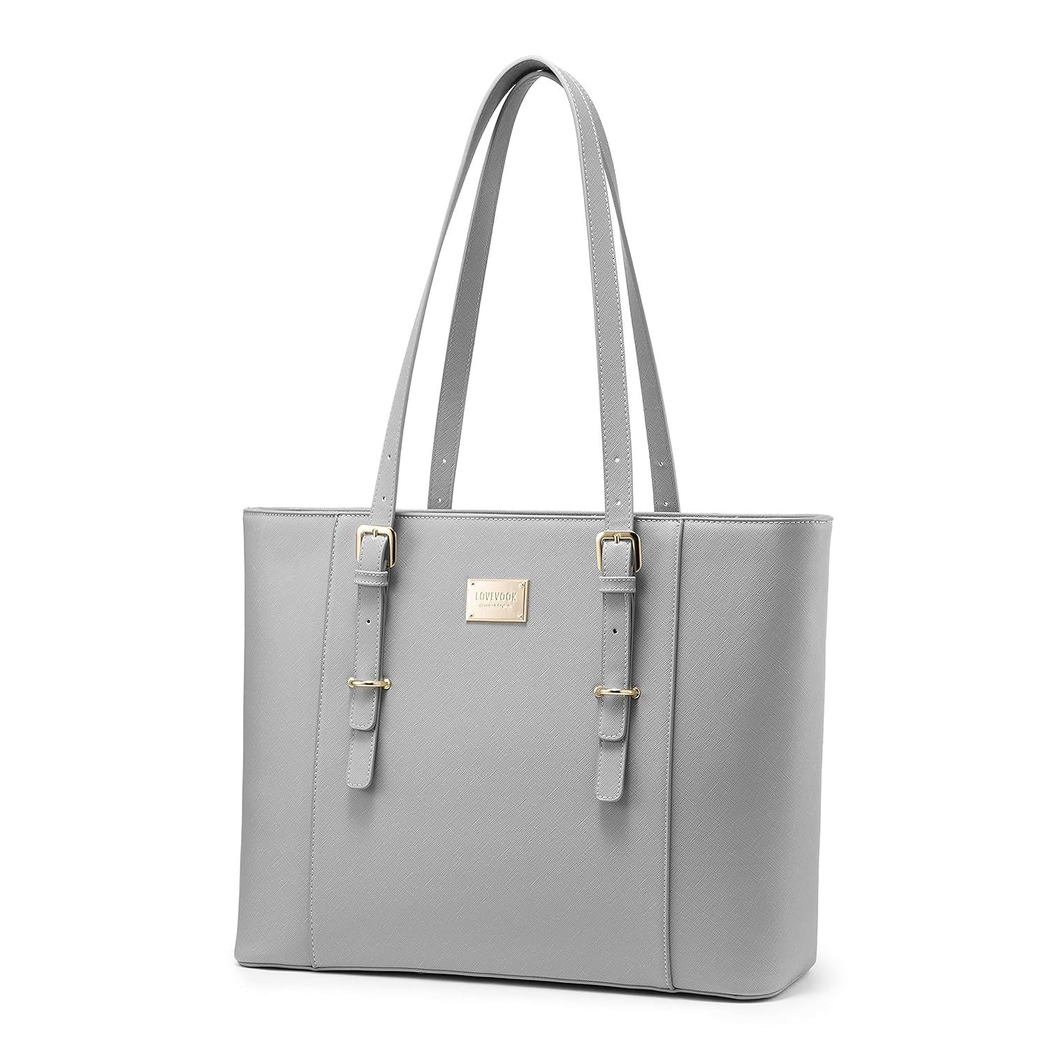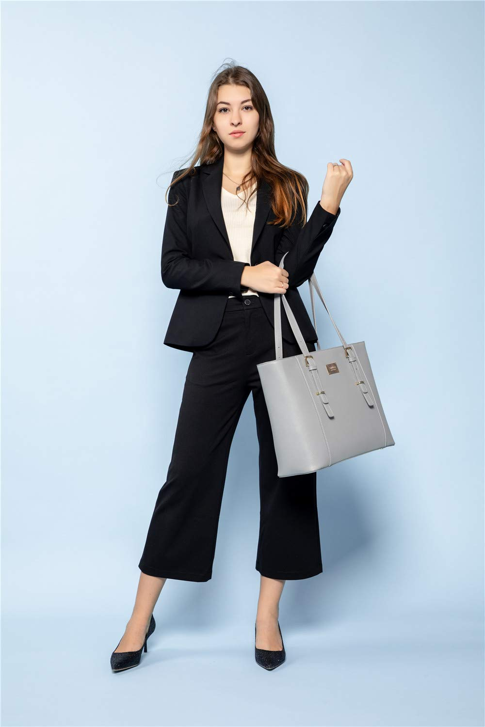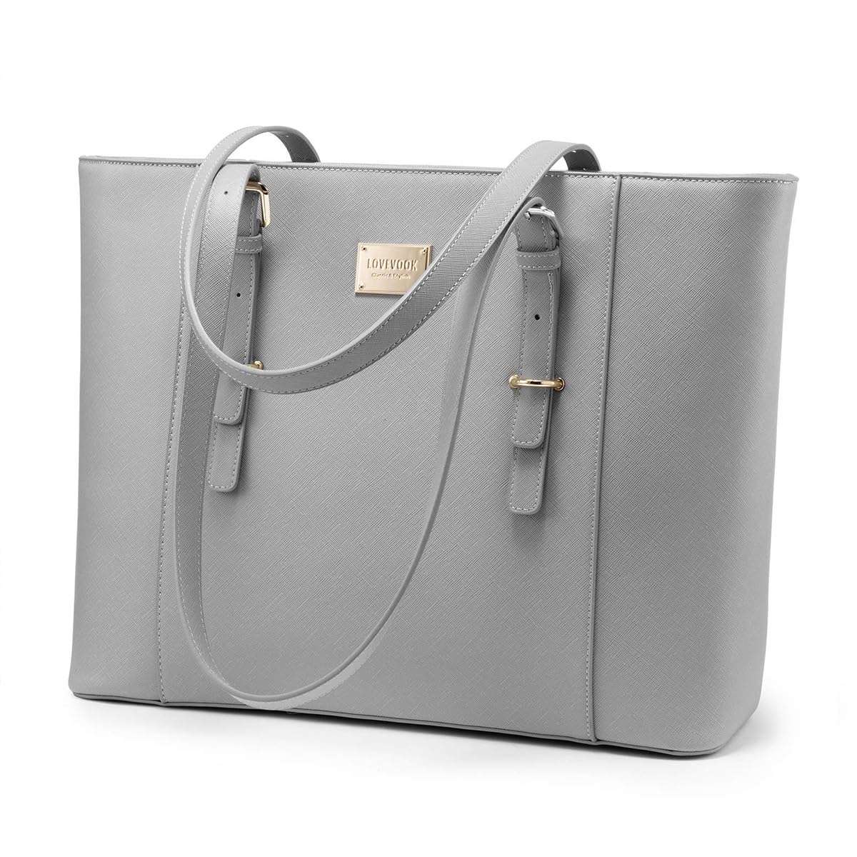 LOVEVOOK Laptop Bag for Women, Structured Leather Computer Bag, Professional Work Tote Purse, Teacher/Attorney’s Choice, Light-Grey