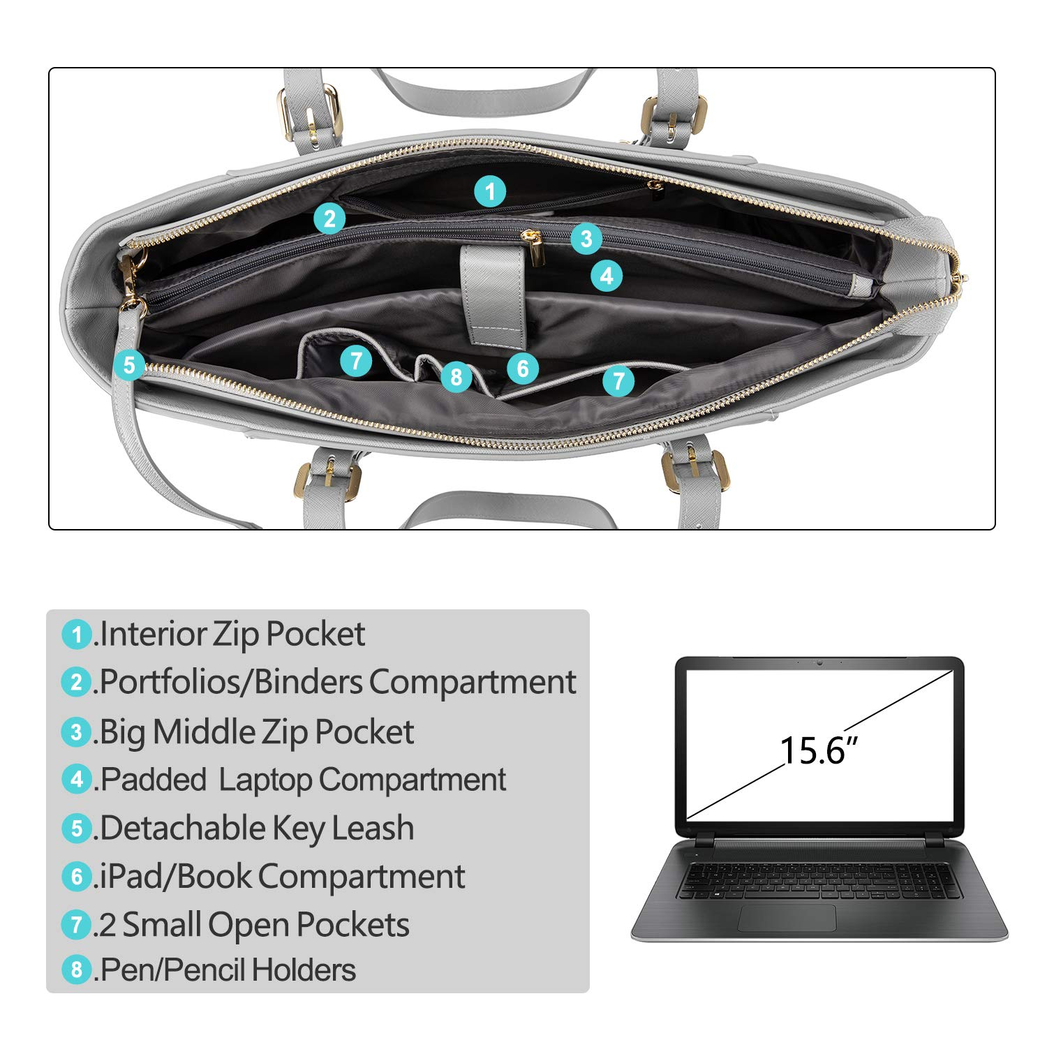 - Fits up to 15.6” laptop, padded laptop compartment