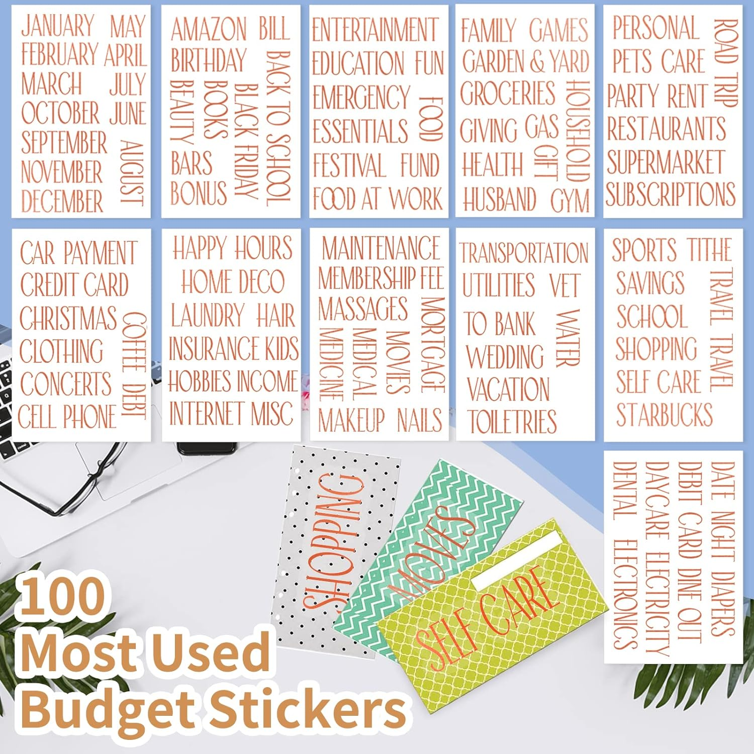 • CASH ENVELOPE STICKERS SET: The budget binder vinyl sticker involve 88 budget labels & 12 monthly stickers, total 100 popular budget category stickers. It covers everything from daily income and expenditures to personal care, education and so on. Effectively distinguish budget envelope, make budget book more organized.