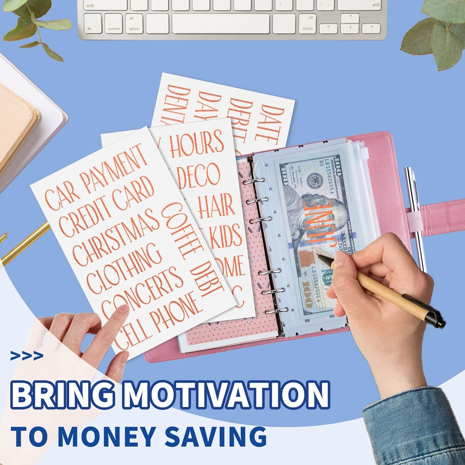 • GET ORGANIZED & PRETTY GIFTS: OOUUREC Planner Label Stickers intend to give your office organizer a sense of inspiration, help simplify cash stuffing envelopes and get a6 binder or zipper pocket organized. The budget labels for savings binder is ideal gift for women to personalize cash wallet budget system, realize financial goals by enjoying the budgeting process.