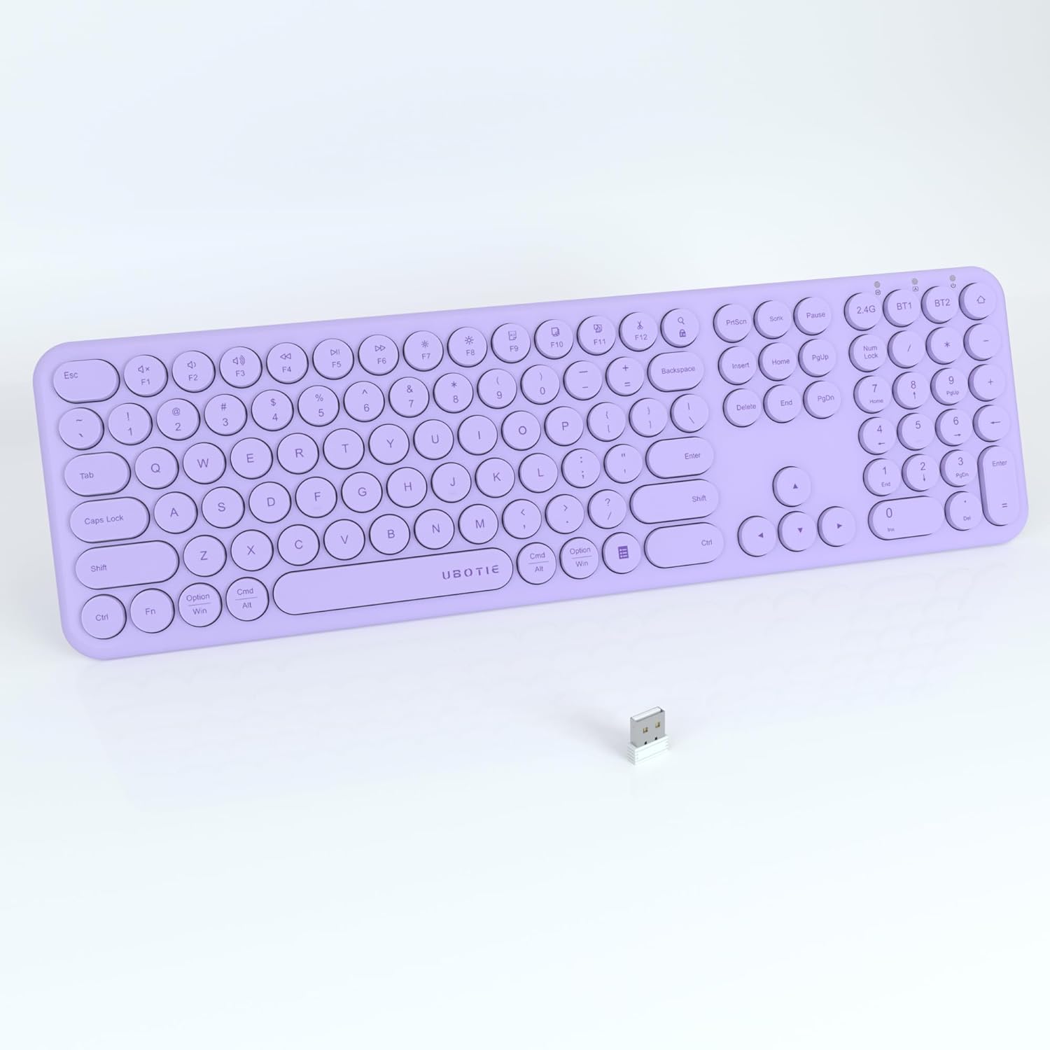 Ubotie Slim & Quiet Wireless/Bluetooth Full Size Keyboard - Purple
