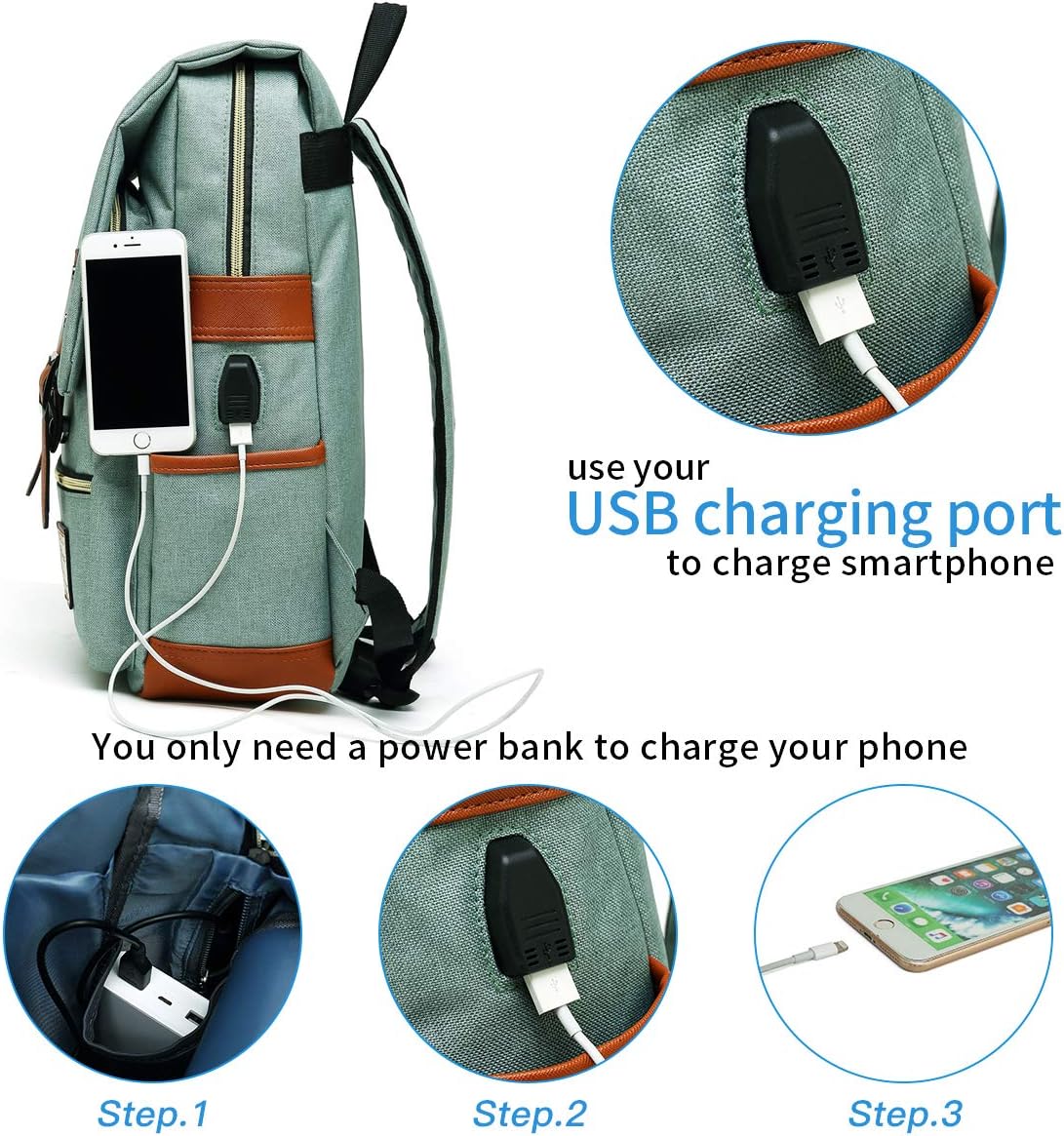 Vintage Laptop Business Backpack with USB Charging Port - 15.6 Inch - Green
