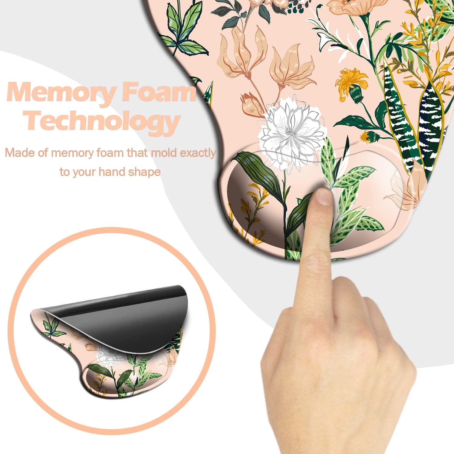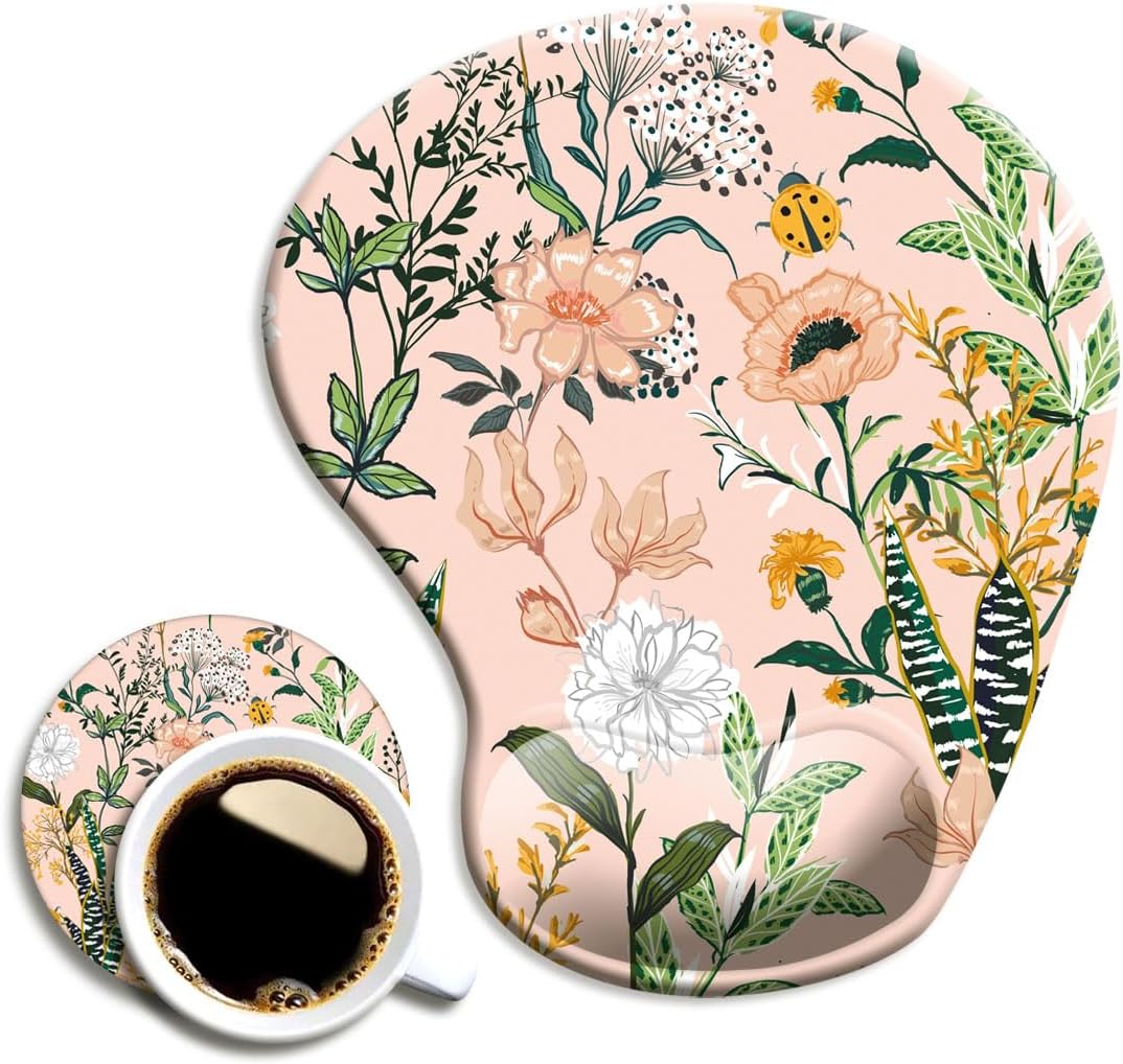 Dooke Ergonomic Mouse Pad With Gel Wrist Support - Pink Floral