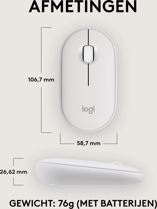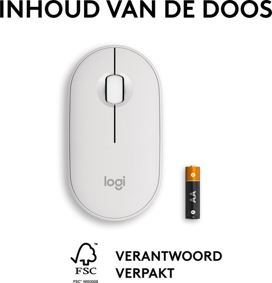 Pebble Mouse 2 M350s runs on 1 AA battery and can be connected wirelessly to