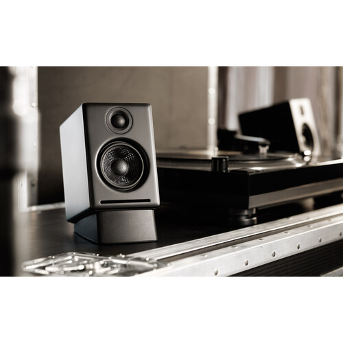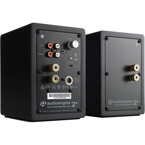 Designed to connect to virtually any device, the satin black Audioengine A2+ Wireless Bluetooth Speaker System provide an analog RCA stereo input, 1/8" input,