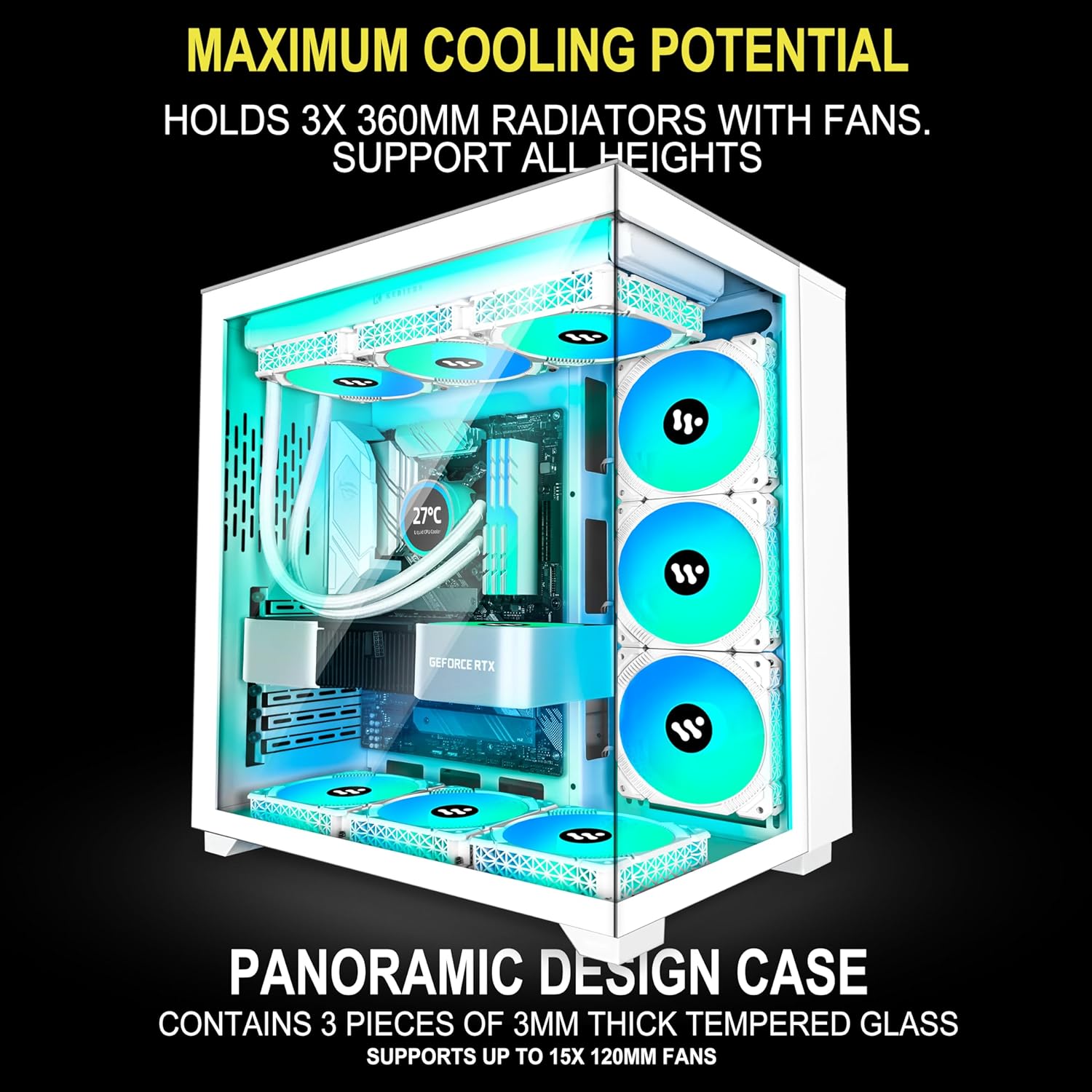 Kediers 9 ARGB Fans Computer ATX, Mid Tower Gaming Case - Tempered Glass Side Panel Door