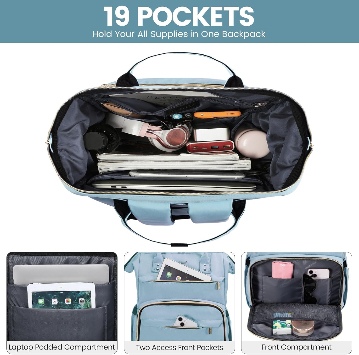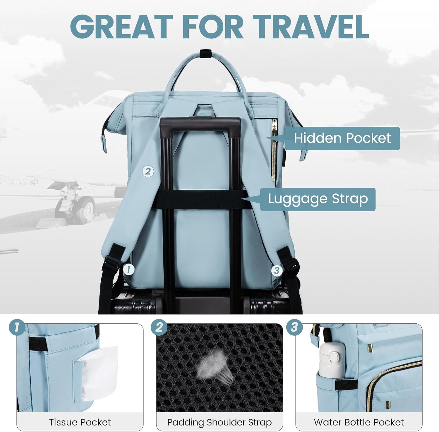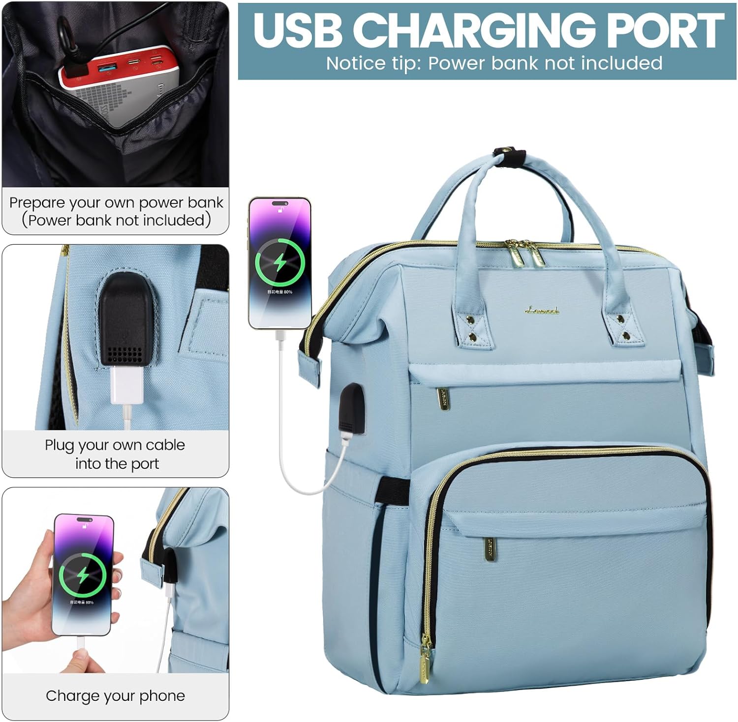LOVEVOOK Laptop Backpack 15.6 Inch With USB Charging Port - Sky Blue