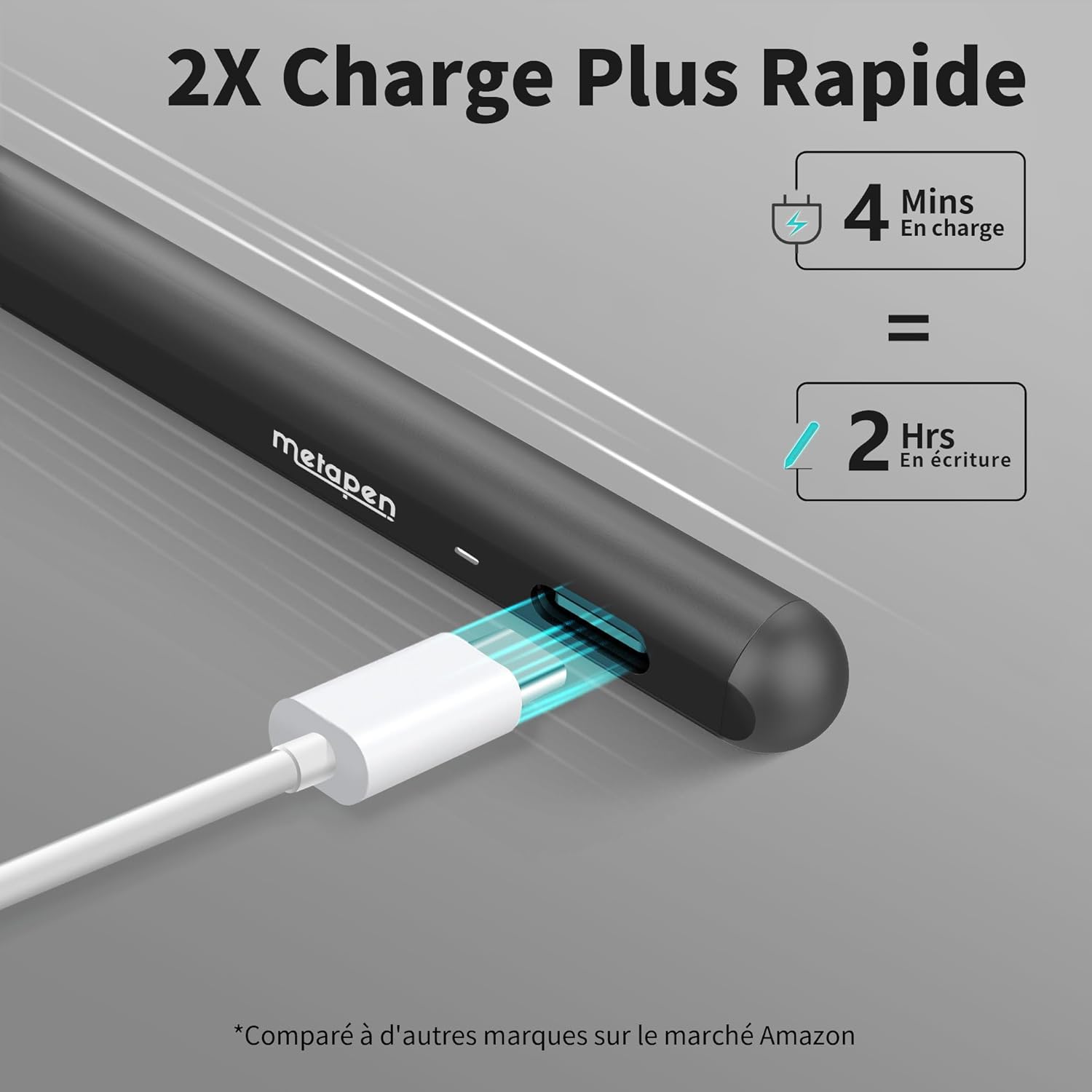 Metapen A8 Quick Charge Stylus Pen - Palm Reject, Tilt Detection - Black