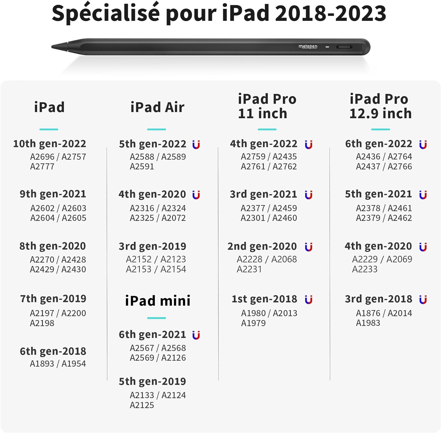 writing or drawing. With two built-in magnets, the A8 metapen stylus can be