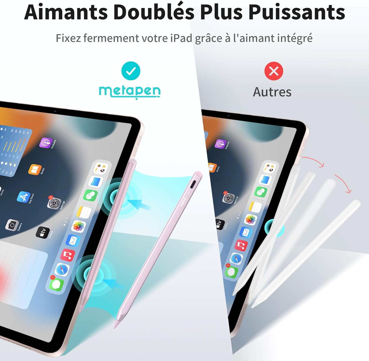 Metapen A8 Quick Charge Stylus Pen - Palm Reject, Tilt Detection – Pink