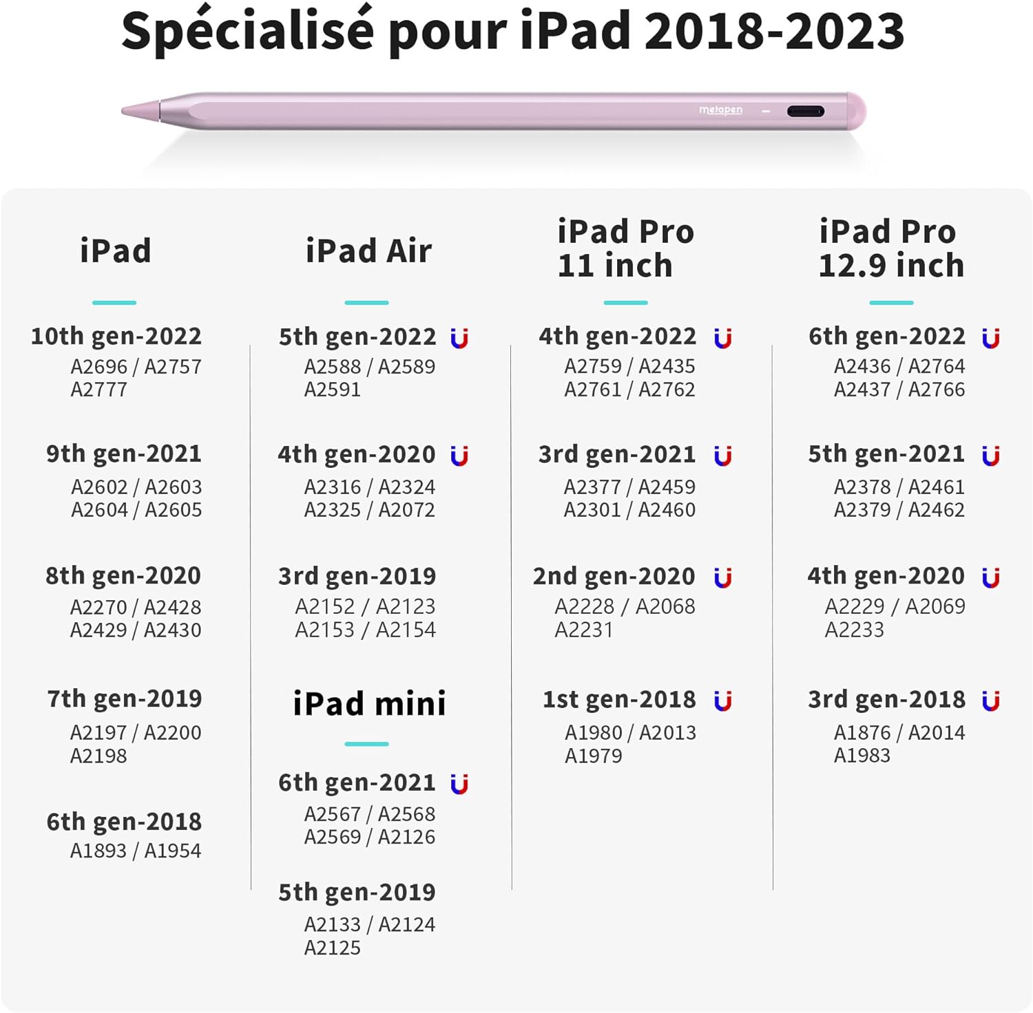iPad Pro 11 inch 1/2/3/4 Gen, iPad Pro 12.9 inch 3/4/5/6 Gen, iPad Mini 5/6