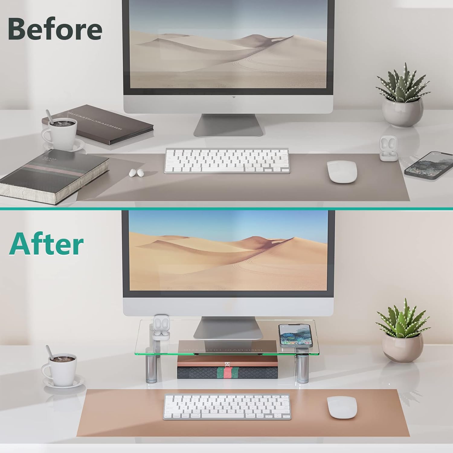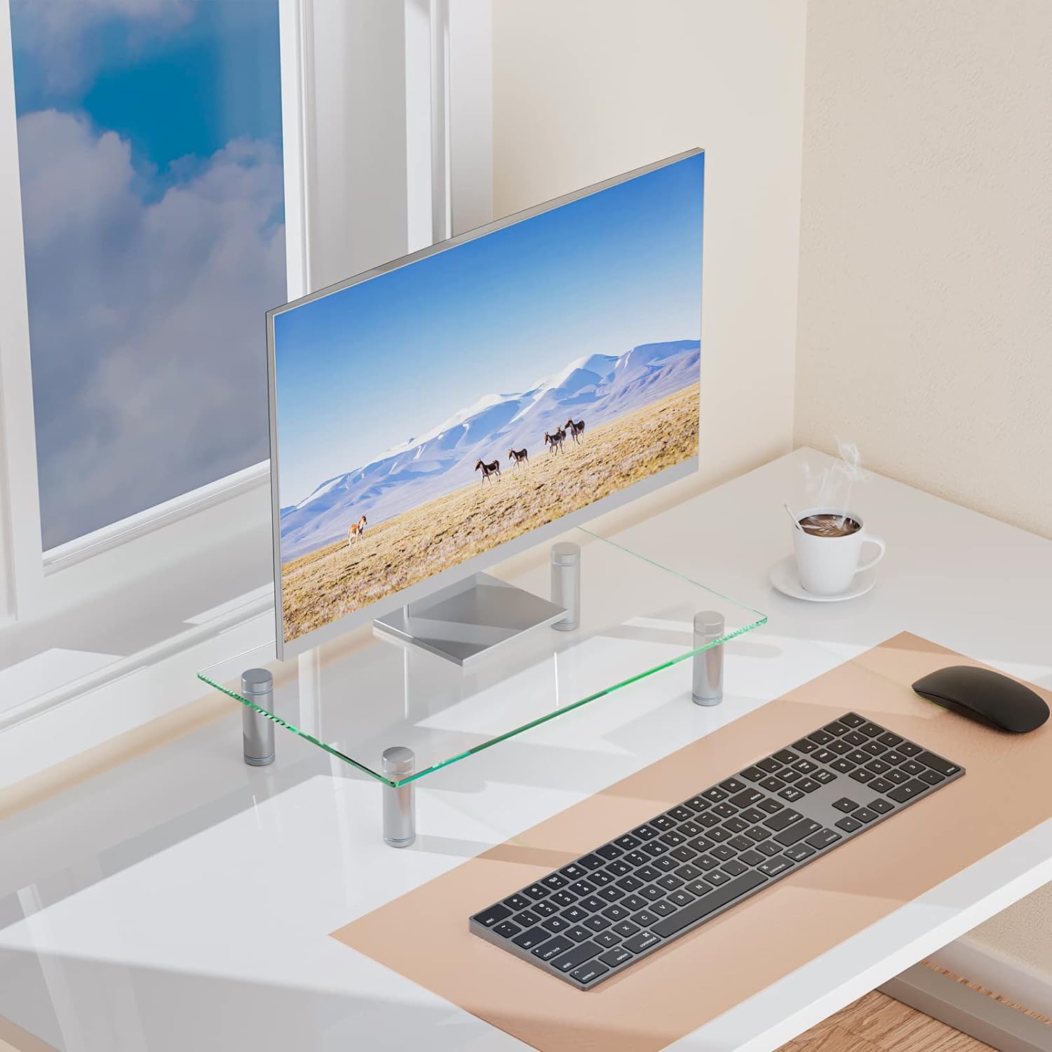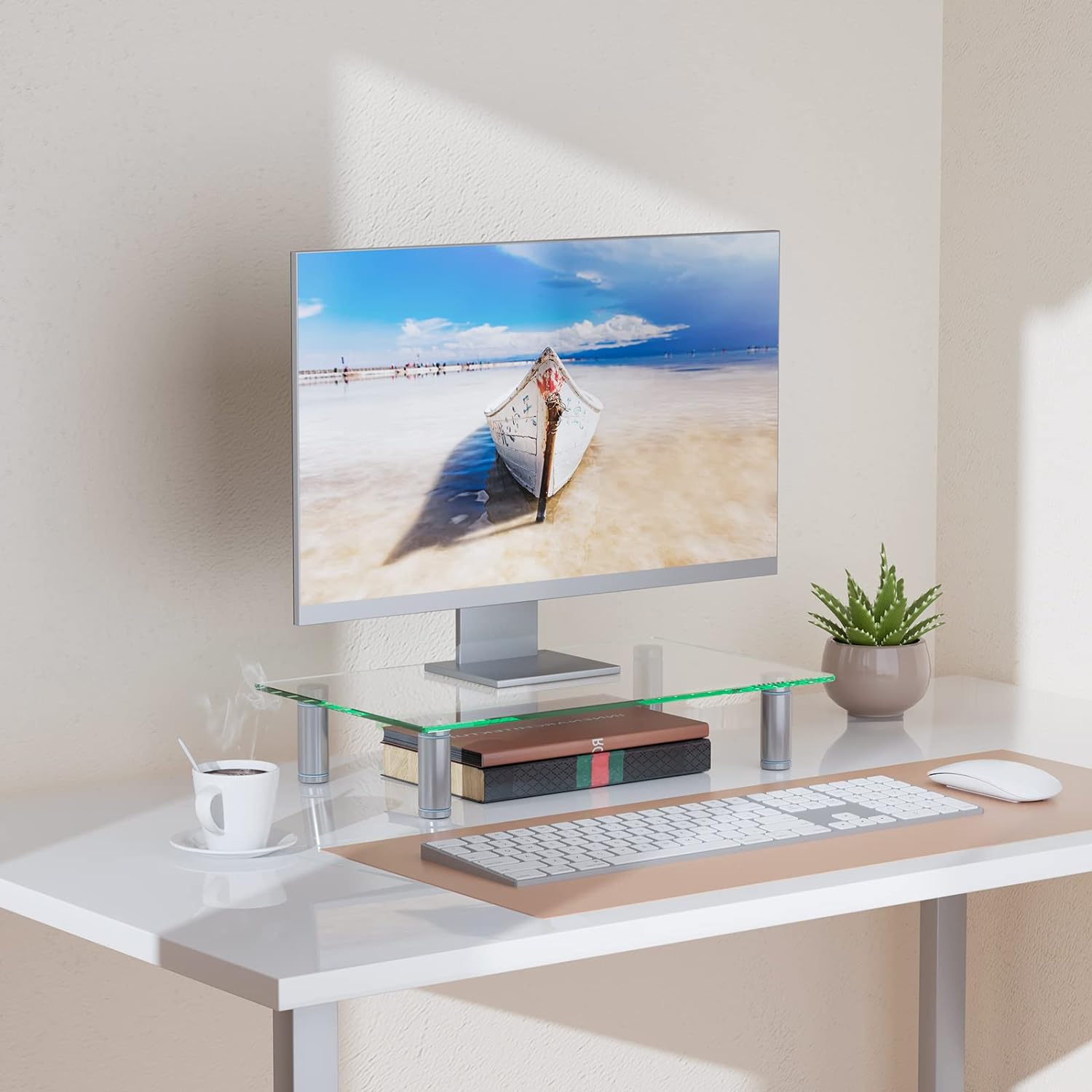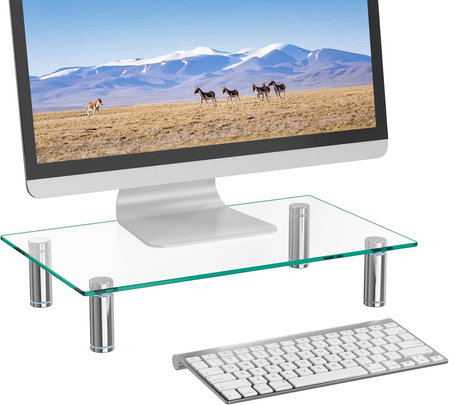 WALI Tempered Glass Desktop Monitor Adjustable Riser / Stand