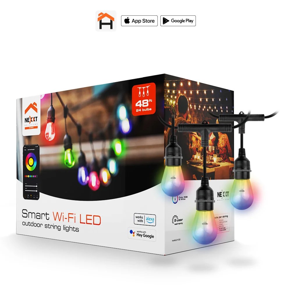 Nexxt Outdoor Smart Wi-Fi LED String Lights 24 Bulbs - 48 feet (NHB-O100)