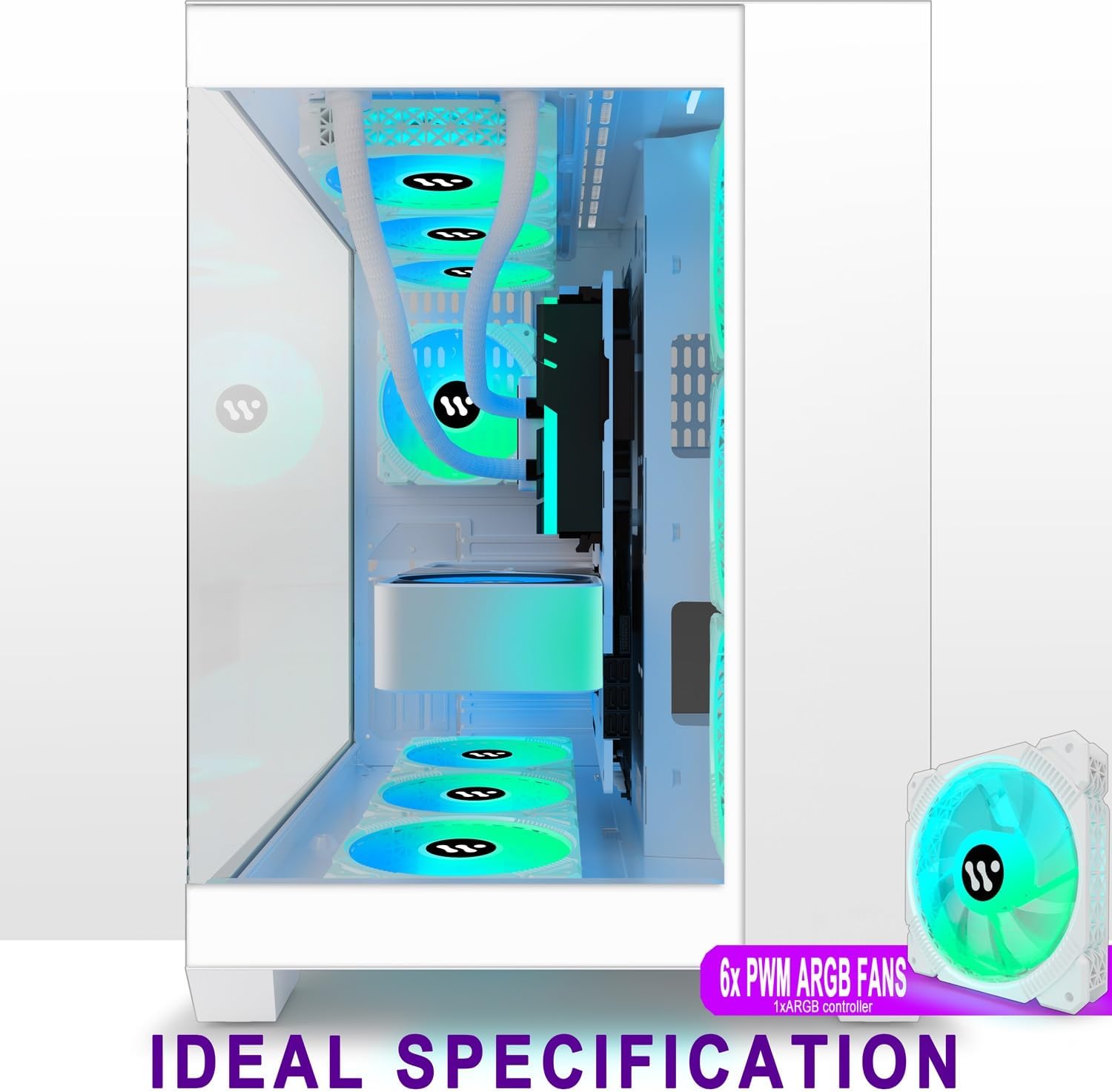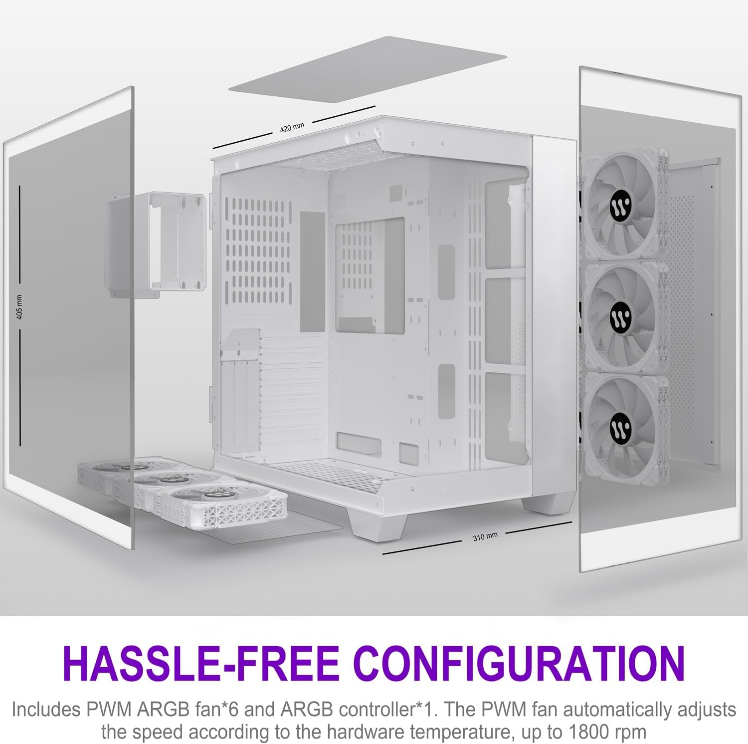 experience, pre-installed 6 PWM ARGB fans, with expensive tempered glass side