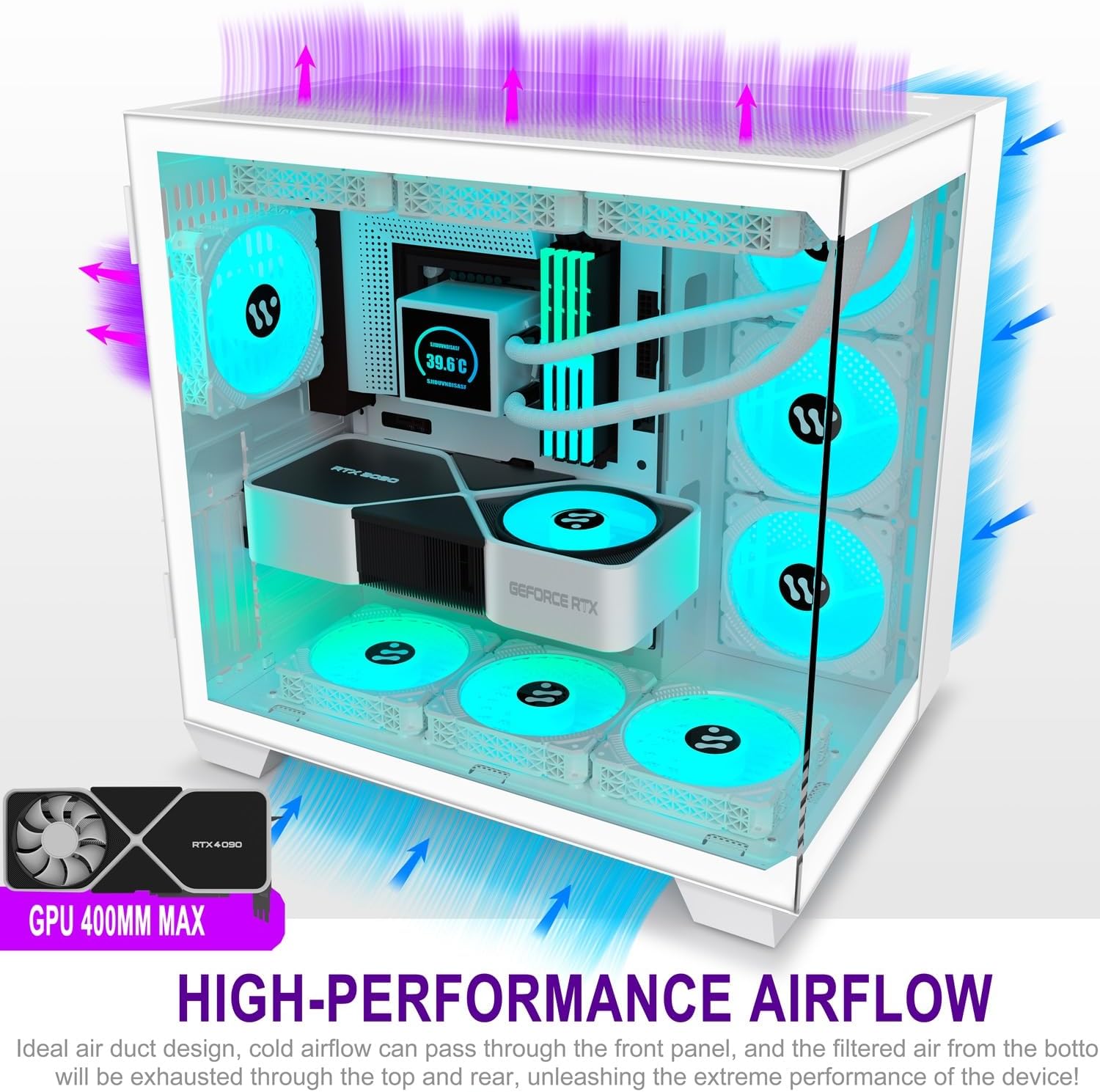 pre-installed 6 adjustable speed ARGB fans in the gaming case, which can be