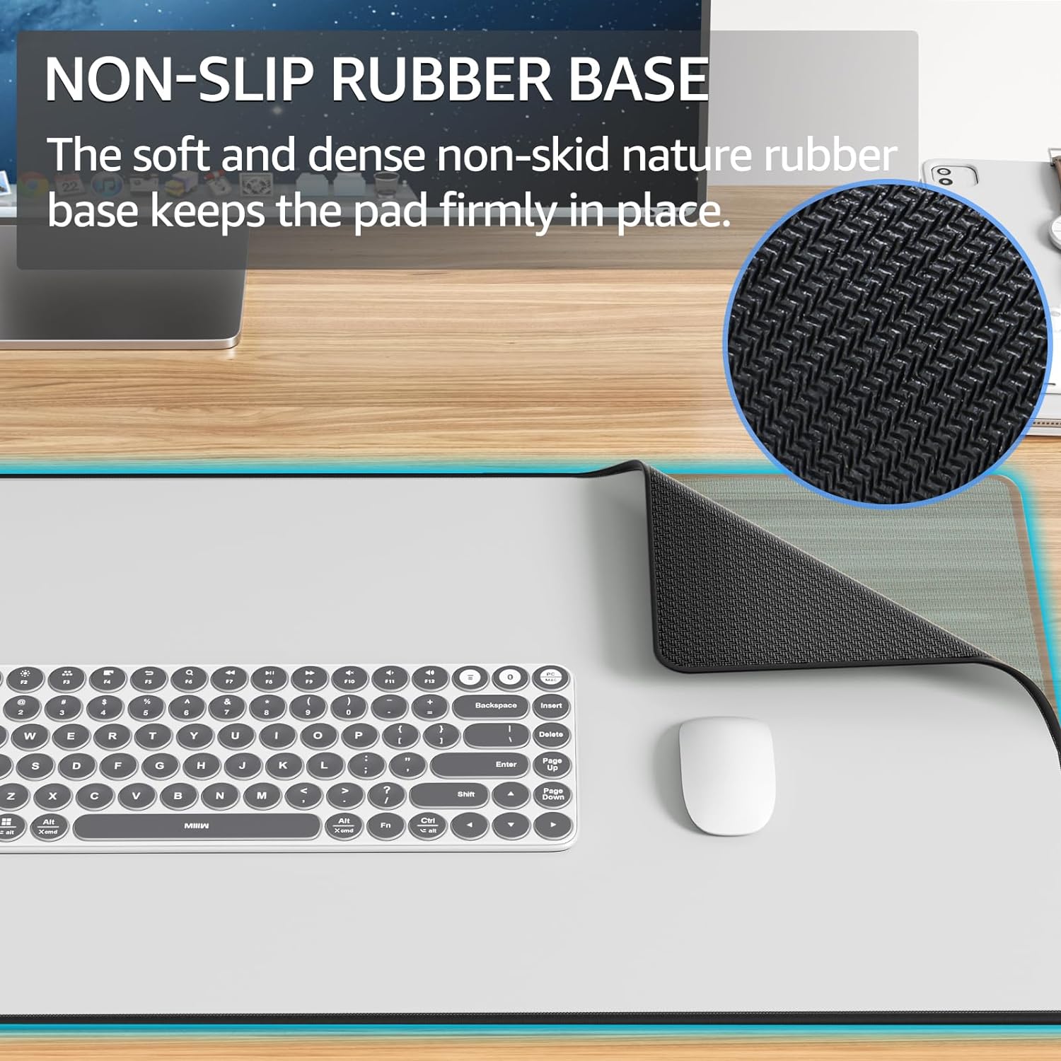 · Non-slip Rubber Base: The soft and dense non-skid nature rubber base keeps this desk pad firmly in place. This large mouse mat remains uniformly flat even over imperfect surfaces. Just immerse into your work or games without worrying about the annoying mouse pad movement.