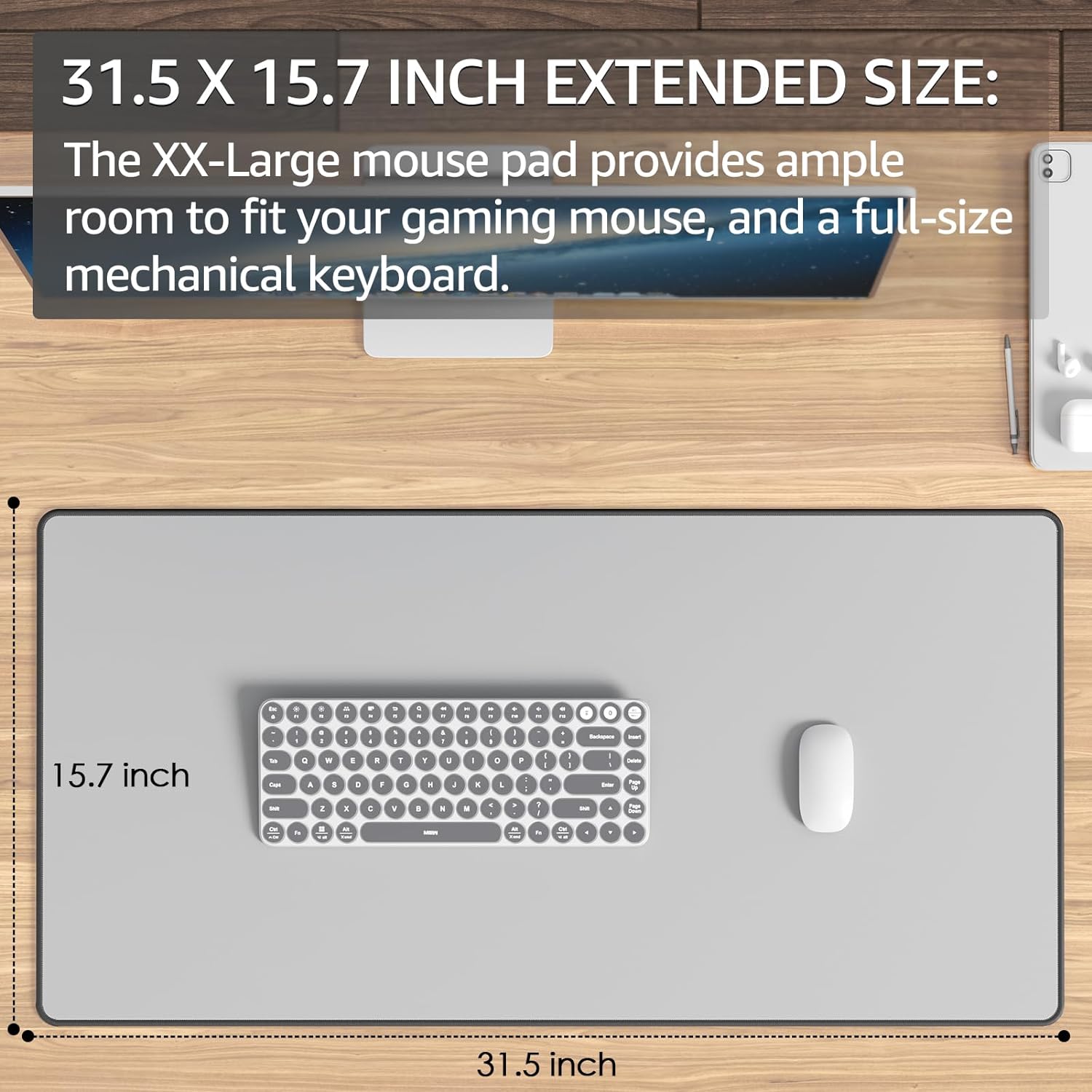 · 31.5 x 15.7 Inch Extended Size: This XX-Large mouse pad provides ample room to fit your gaming mouse, full-size mechanical keyboard, and other desk items. Keep your desk clean and uncluttered with the freedom to configure your setup as desired. Perfect for gamers who use a lower DPI or need more room to maneuver.