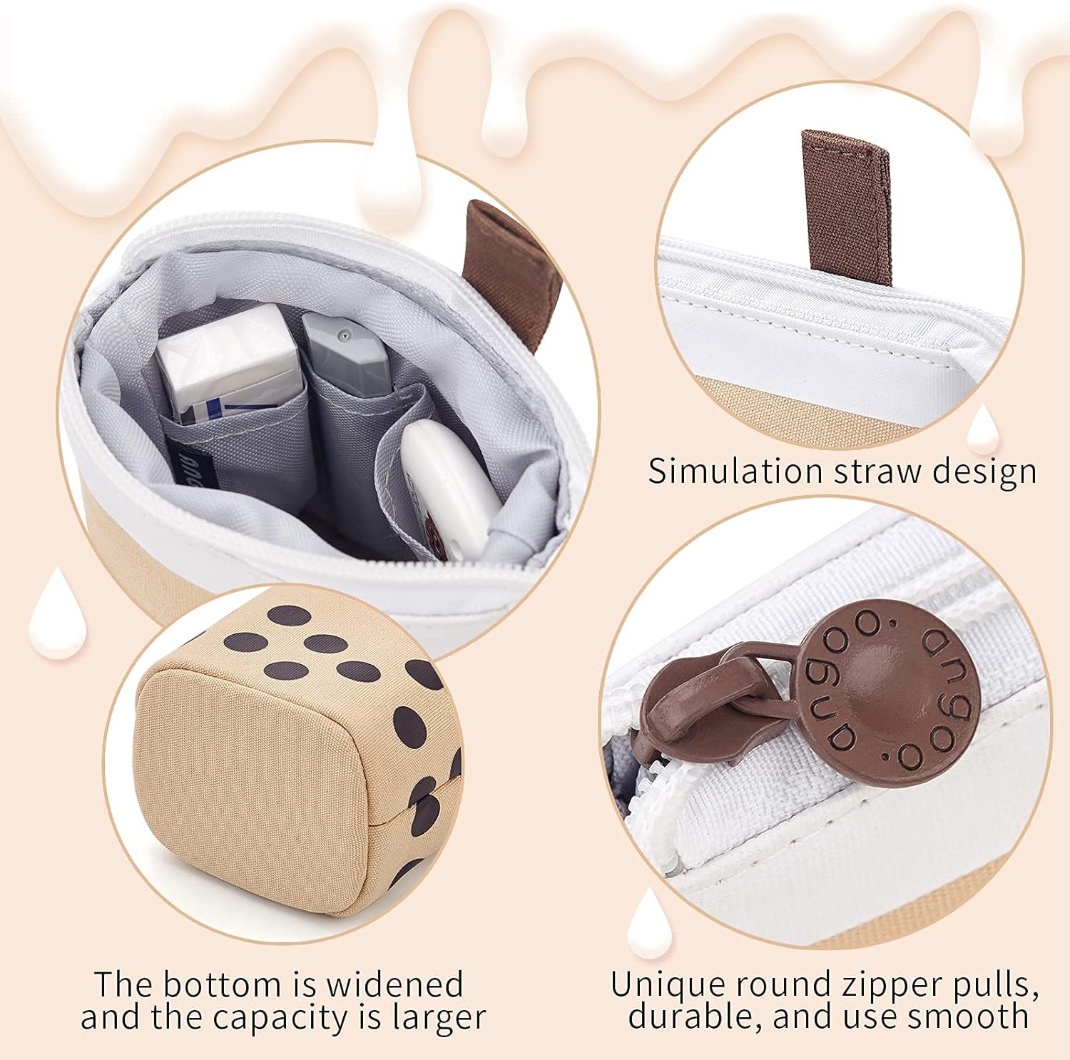 ·         CUTE DESIGN: This pencil case has a Boba tea shape with straw, making your life full of fun. It is spacious enough to store and organize your stuff.