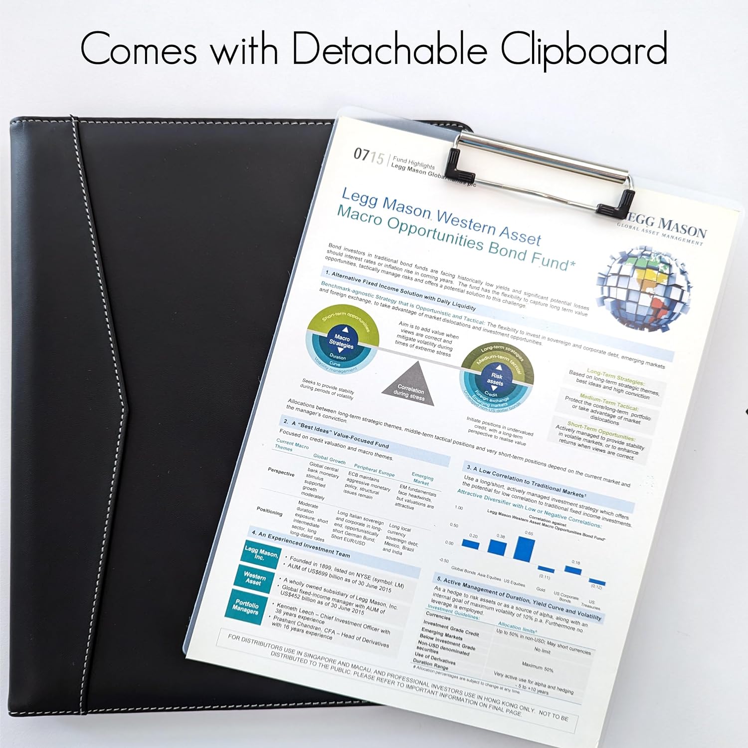 STYLIO Padfolio Clipboard Organizer with Removable Clipboard Folio - Black