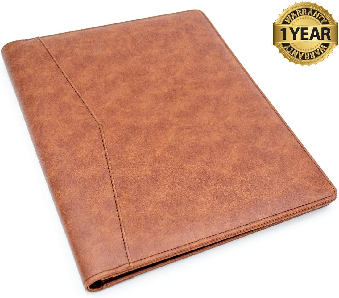 finishing. This faux leather folder is water resistant and fits most briefcases