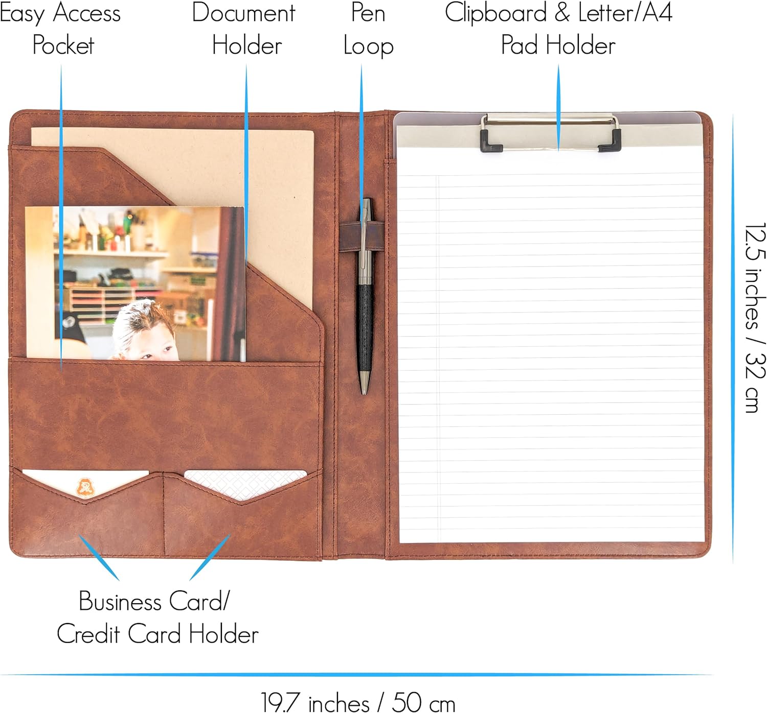 STYLIO Padfolio Clipboard Organizer with Removable Clipboard Folio – Brown