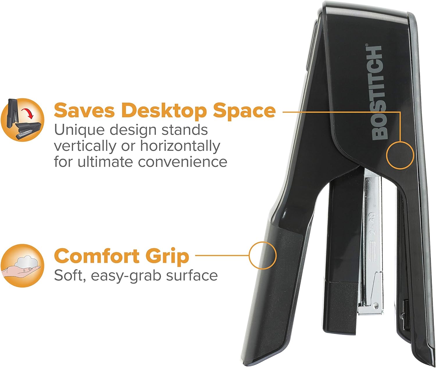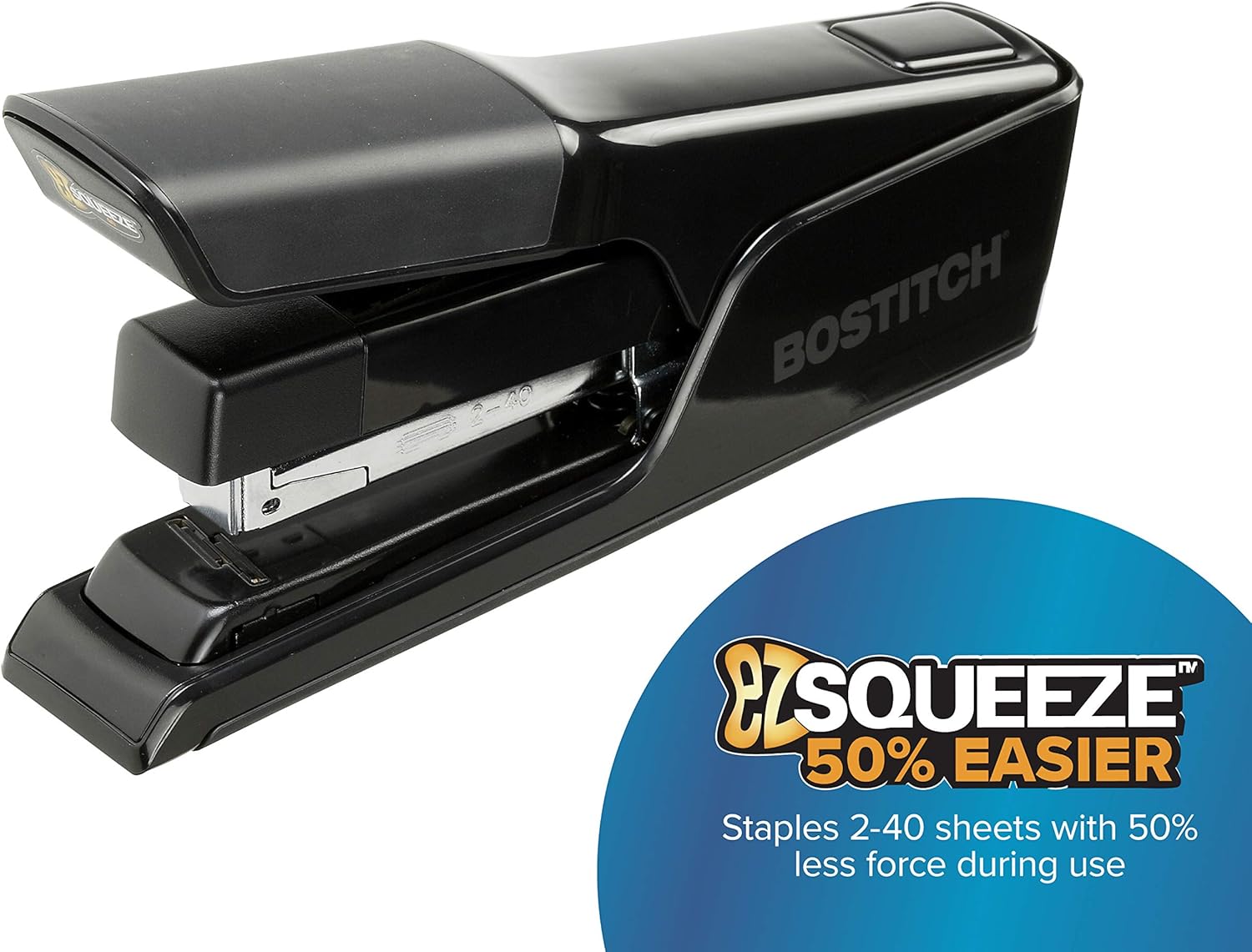 Bostitch Office EZ Squeeze 40 Sheet Flat Clinch Desktop Stapler - Black (B9040)