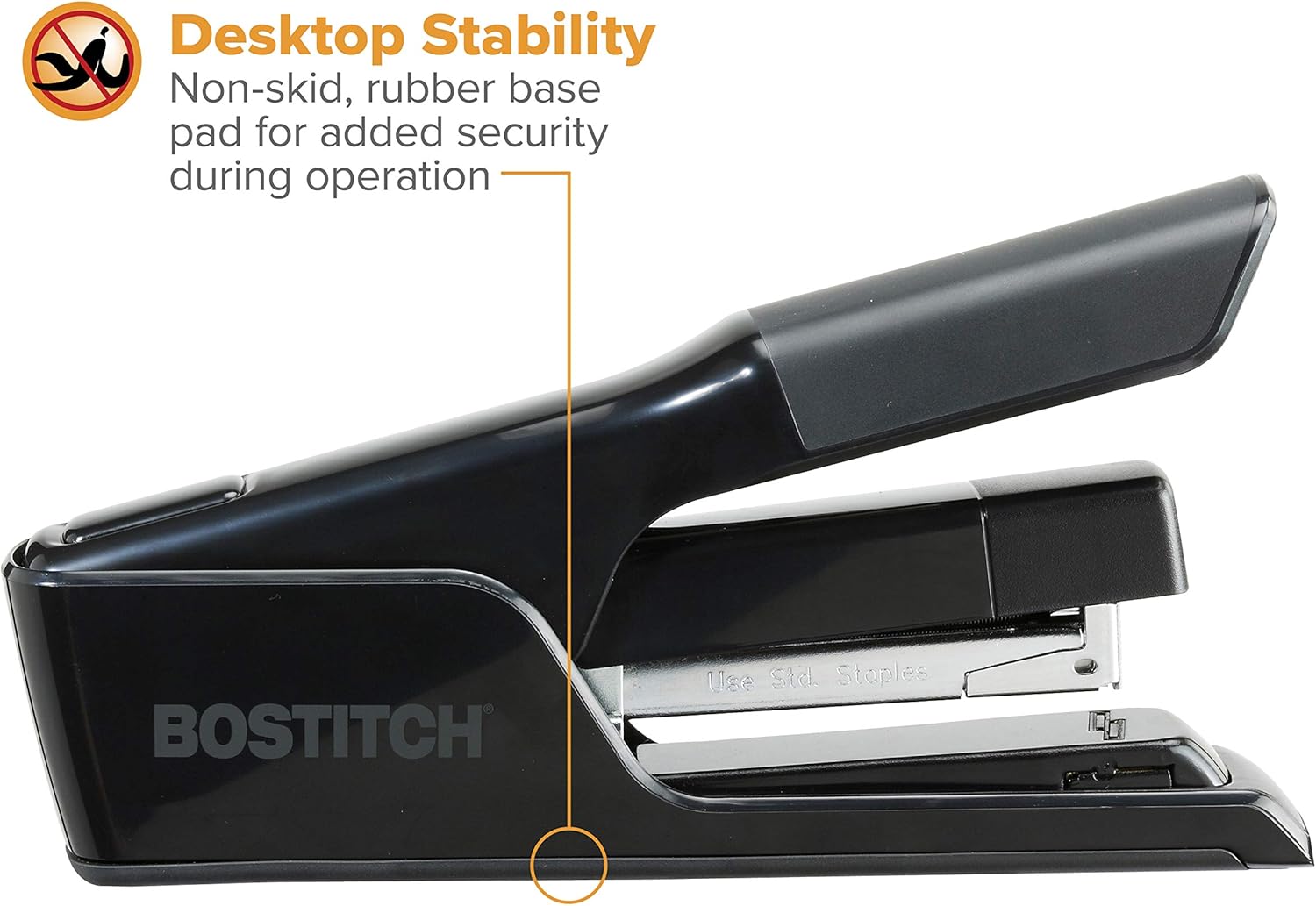 comfort grip offers supreme stapling comfort and non-skid base for