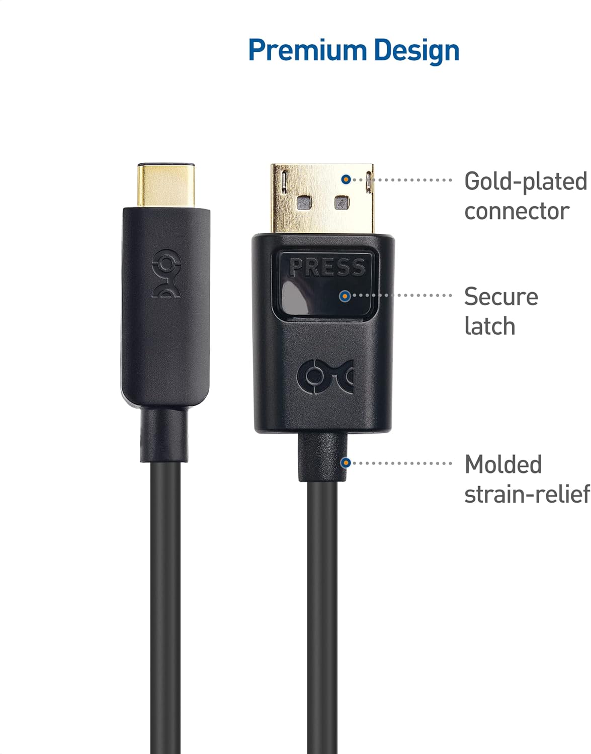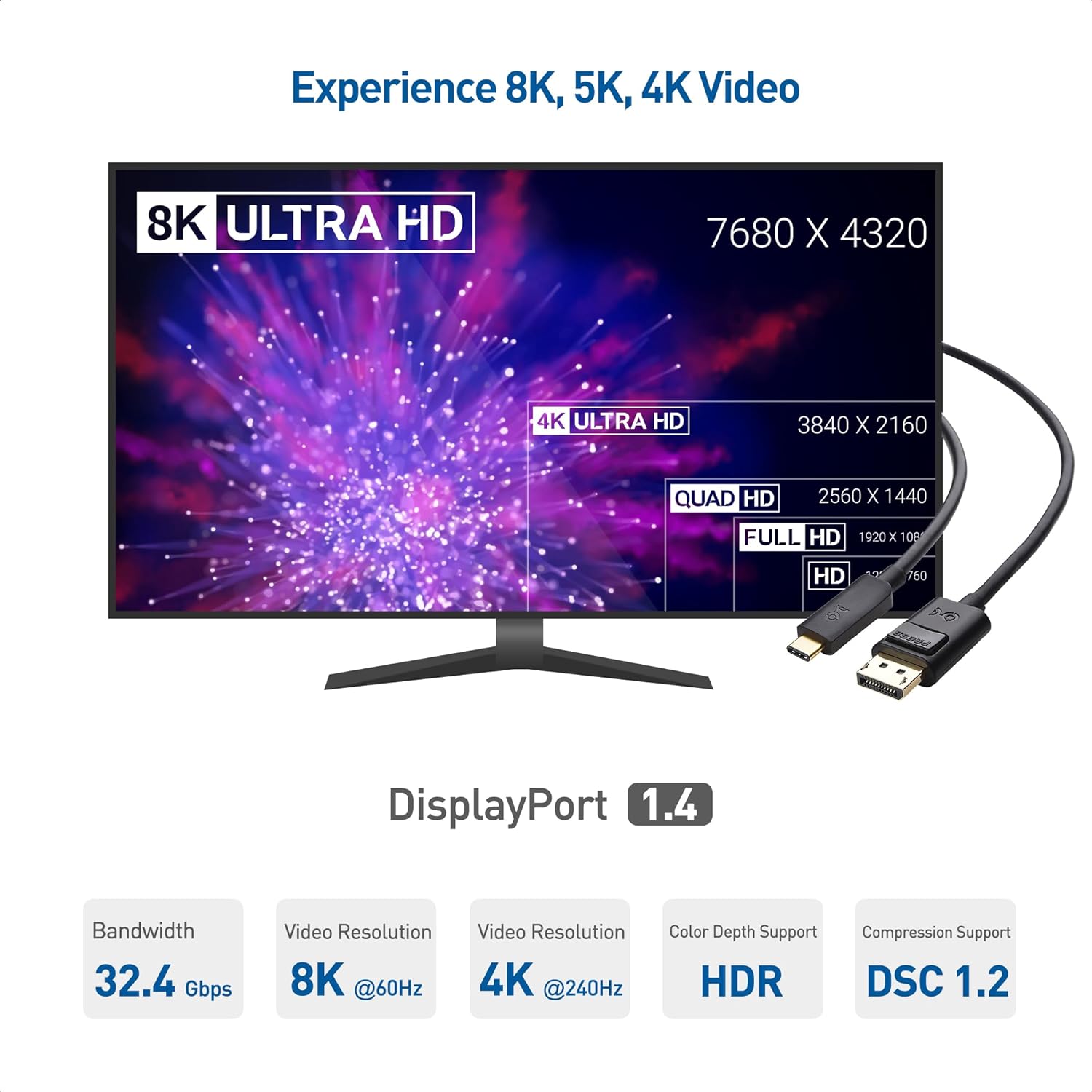 Connectivity: This USB-C to DisplayPort 1.4 cable ensures a direct