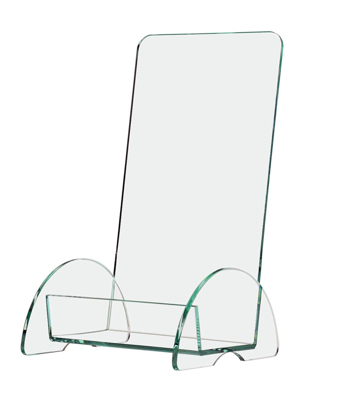 - Green tinted edges create the look of a glass display unit yet is more durable and lightweight
