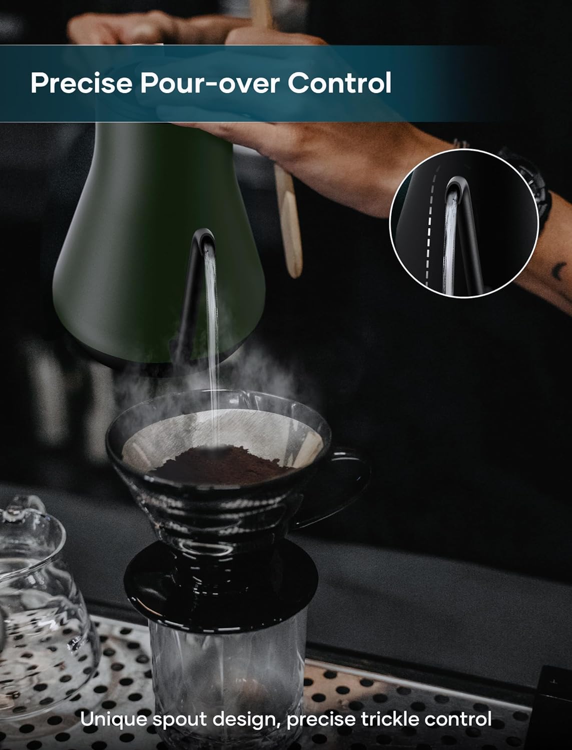 - Ultra-Fine Gooseneck Spout - The 0.65mm fine spout allows for precise control of water flow speed during pour-over coffee, resulting in better flavor and taste.