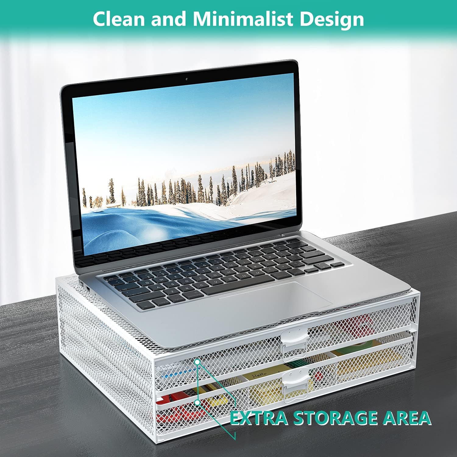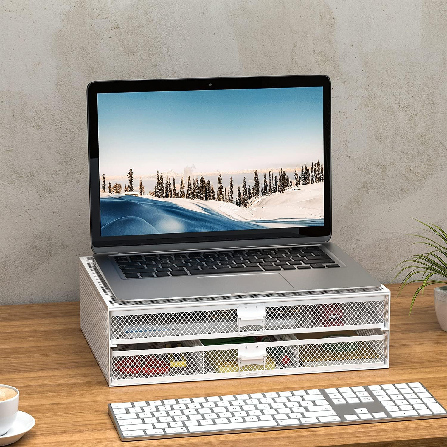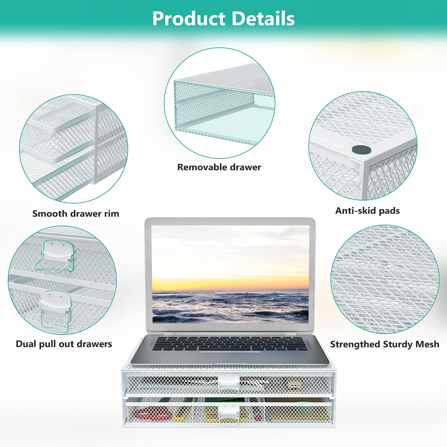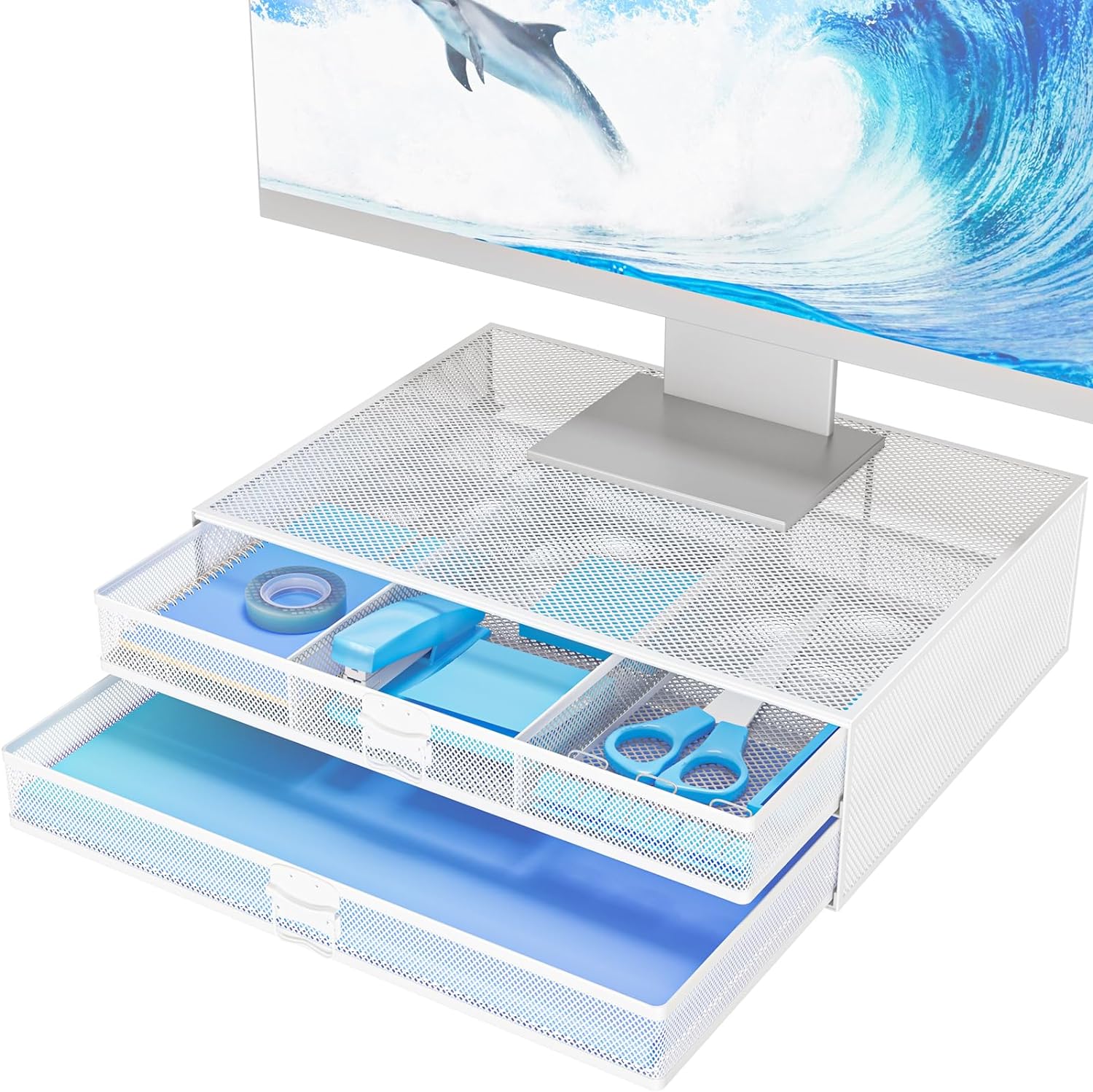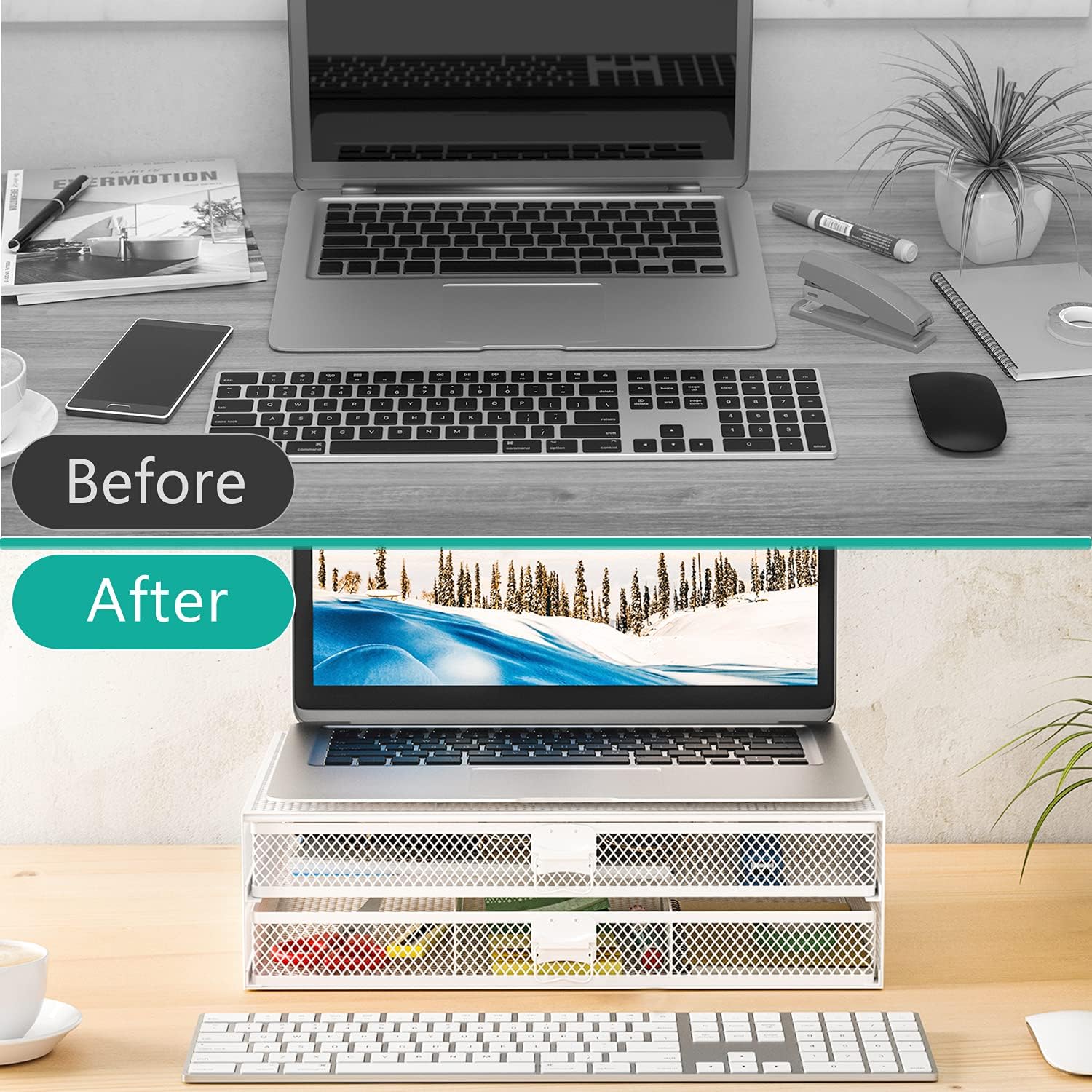 WALI Monitor Stand with Drawers Storage & Desk Organizer - White