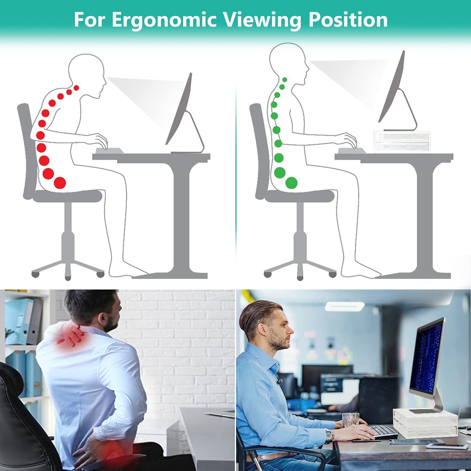 - Ergonomic: Raise TV, monitor or laptop by 4.7 inches off the desktop to create a comfortable viewing position and a better healthy sitting position which help reduce stress on the neck and back.