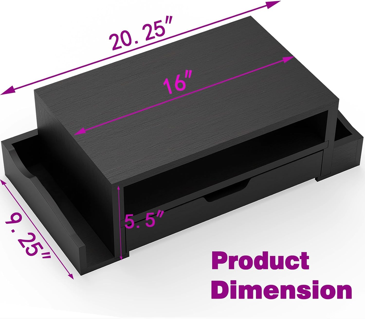 Sleek Wood Monitor Stand & Riser / Desk Organizer with Drawer and Pen Holder - Black