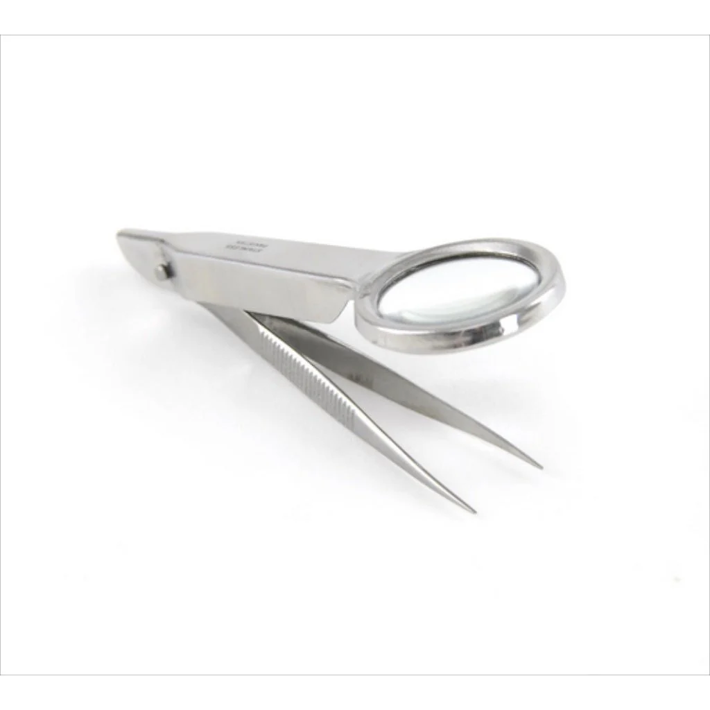 - Sharp tweezers ensure a precise grip and the magnifying glass ensures you always grap just what you meant to.