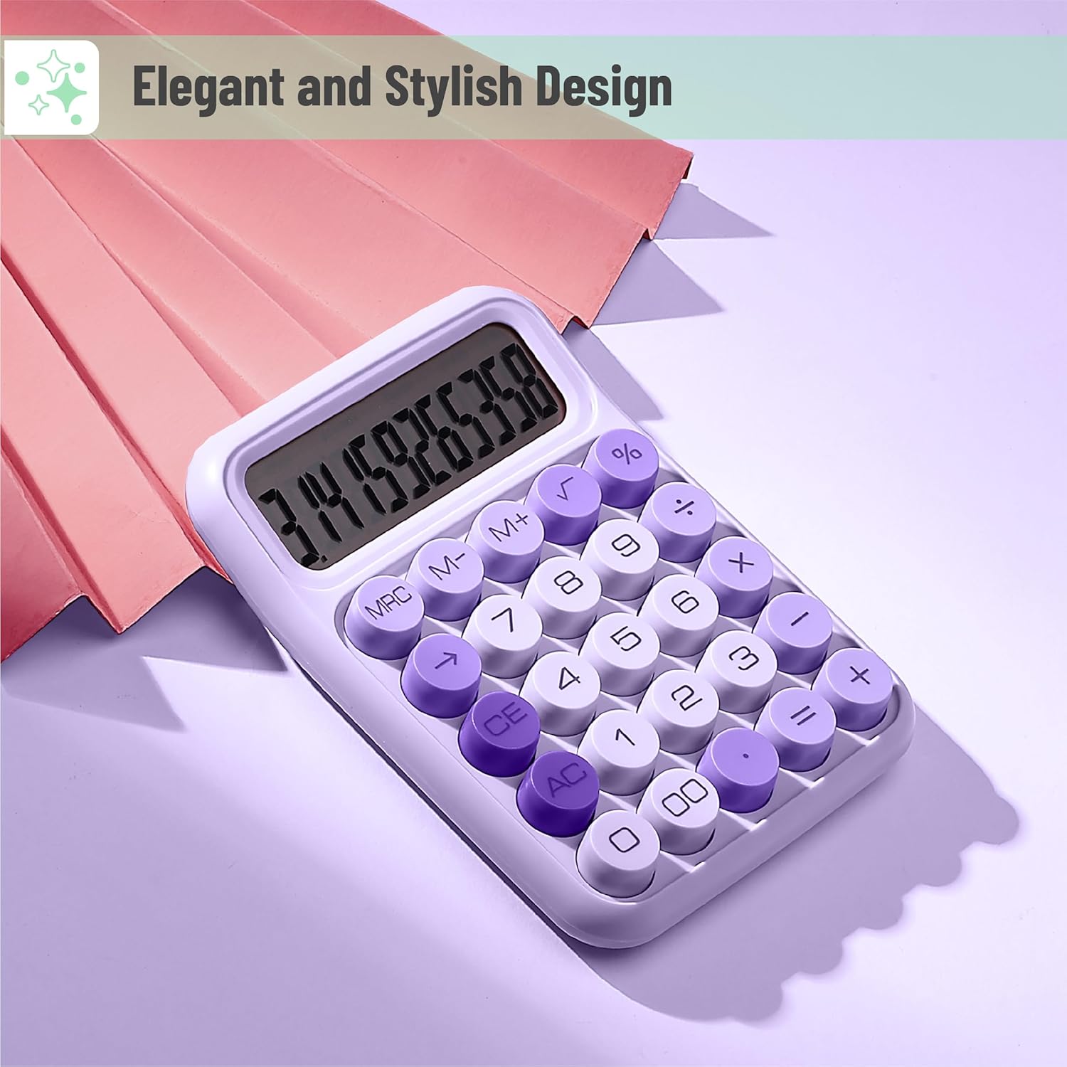 Mr.Pen Mechanical 12 Digits Large LCD Display Switch Calculator – Purple