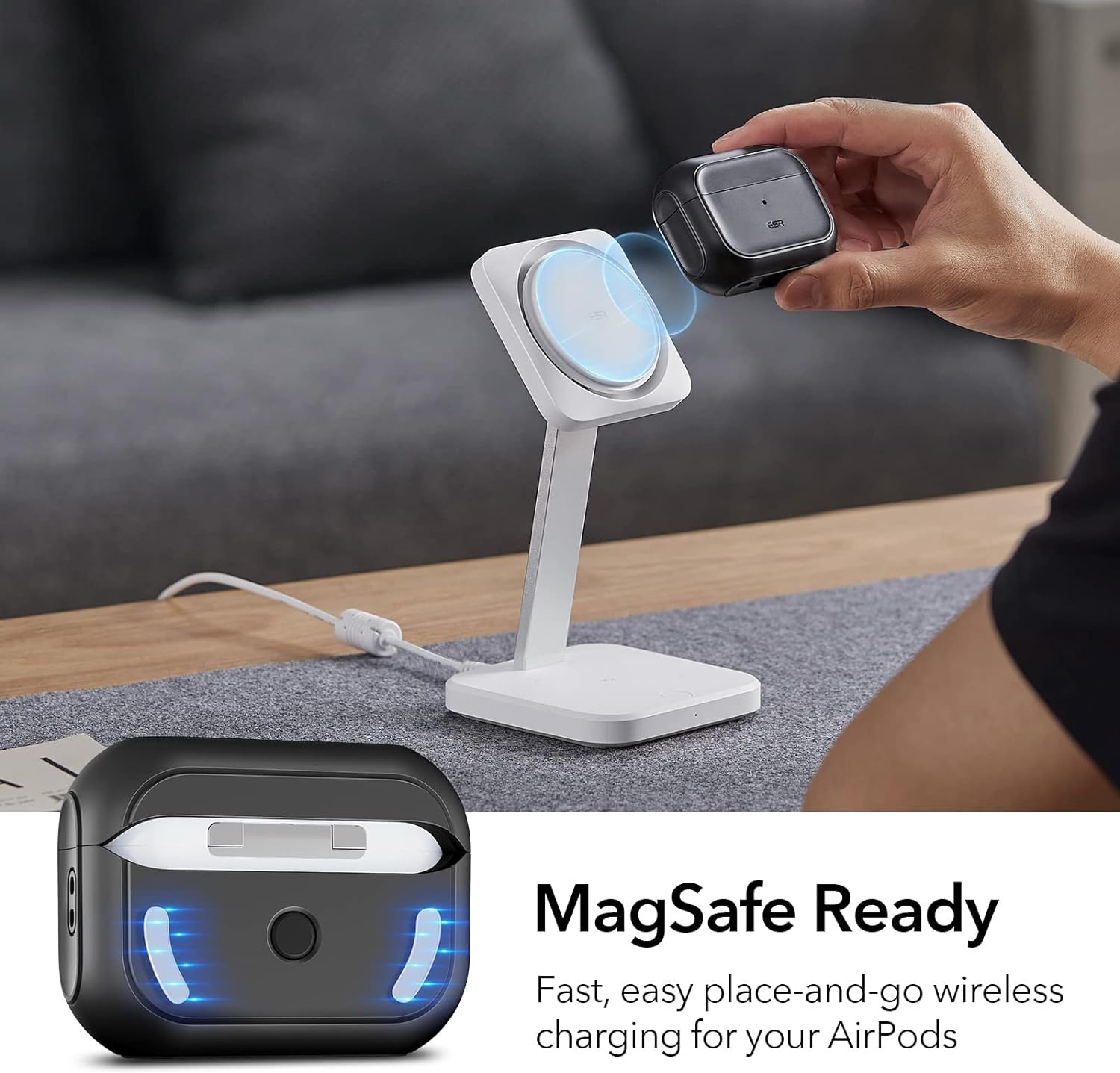- MagSafe Ready: strong magnets built into the back of the case ensure a secure lock on MagSafe chargers, letting you enjoy tap-and-go wireless charging for your earbuds