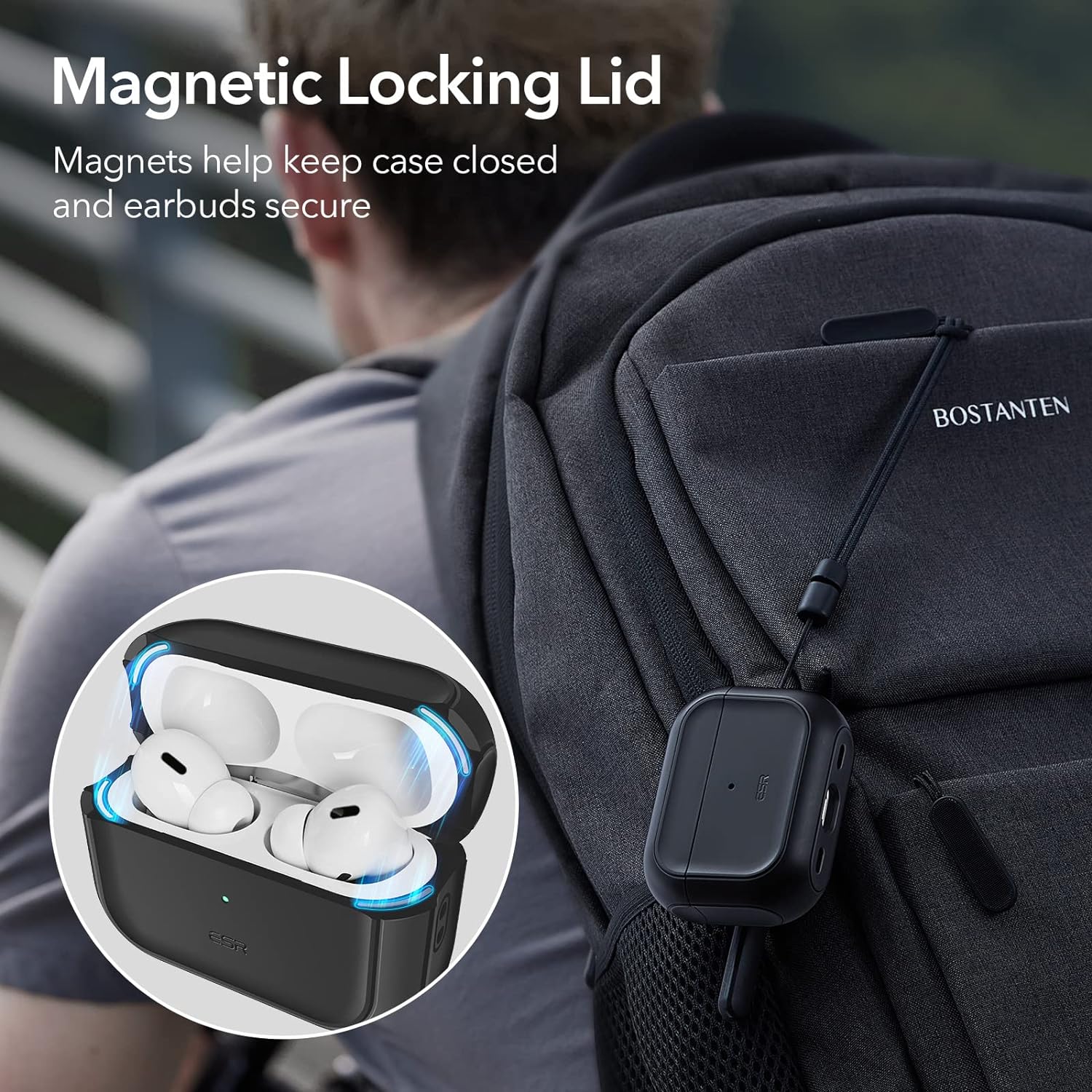 ESR for AirPods Pro 2nd Generation Case (HaloLock) - Full Drop Protection Cover with Lanyard - Black