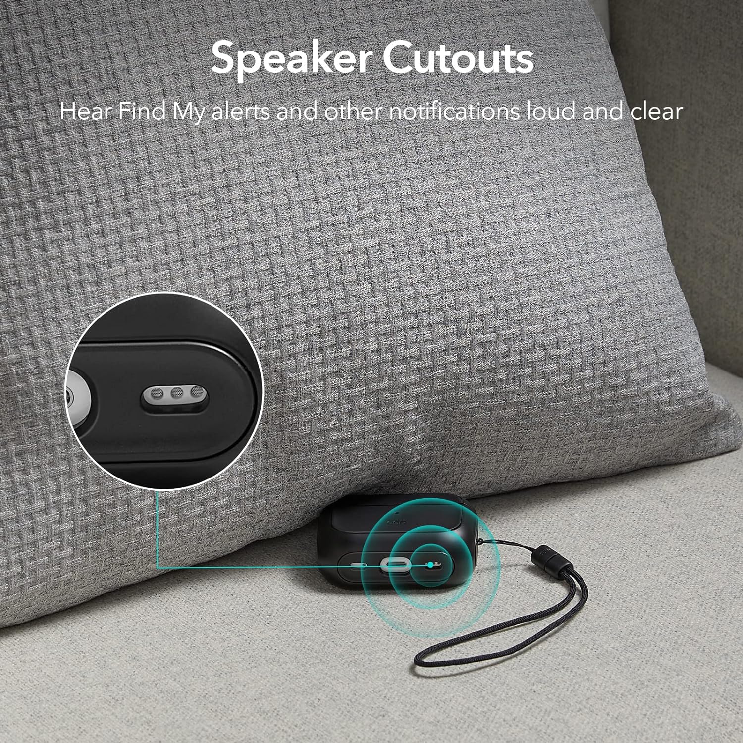 - Speaker Cutouts: specially positioned apertures on the base let you hear the FIND MY app sound loud and clear, so you’ll always know where your earbuds are