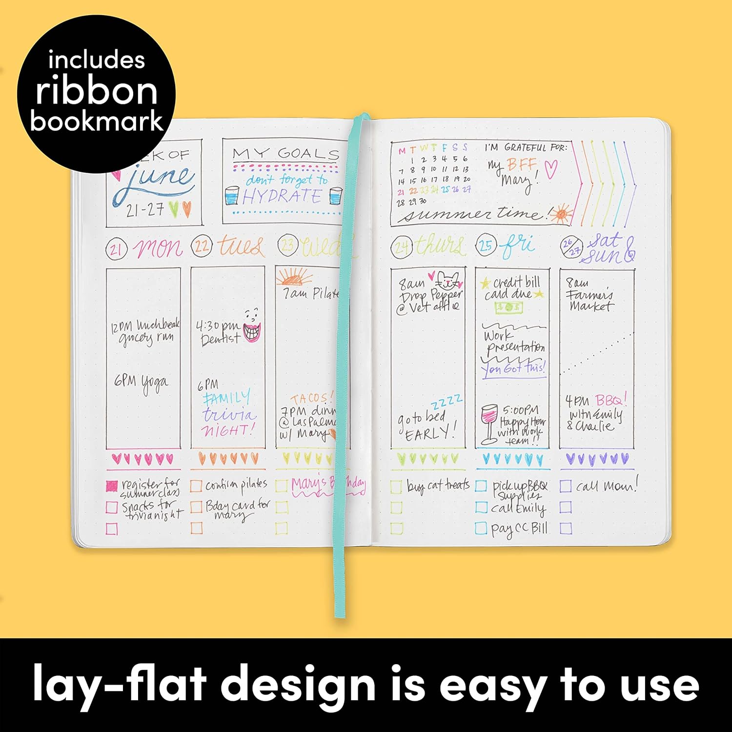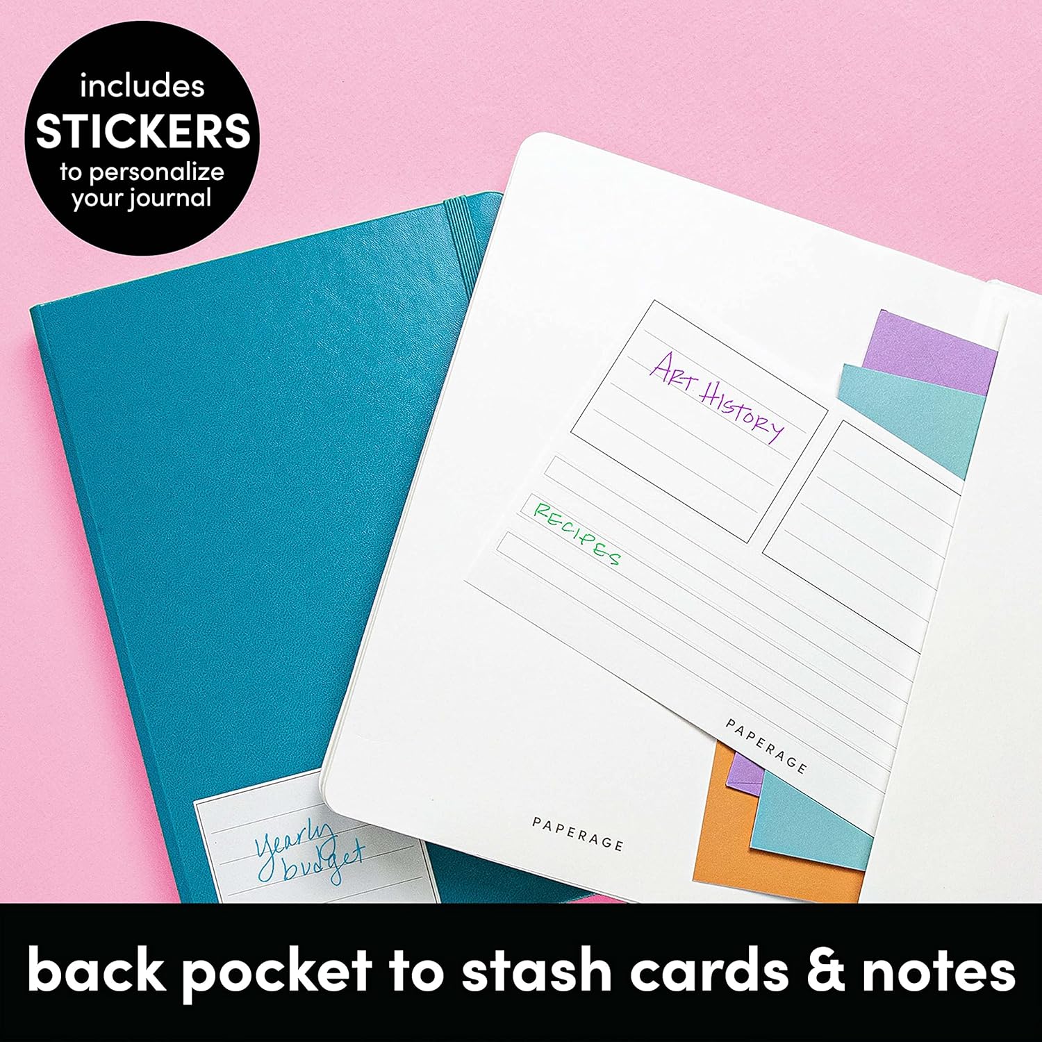 pages, inner expandable pocket, sticker labels, ribbon bookmark &
