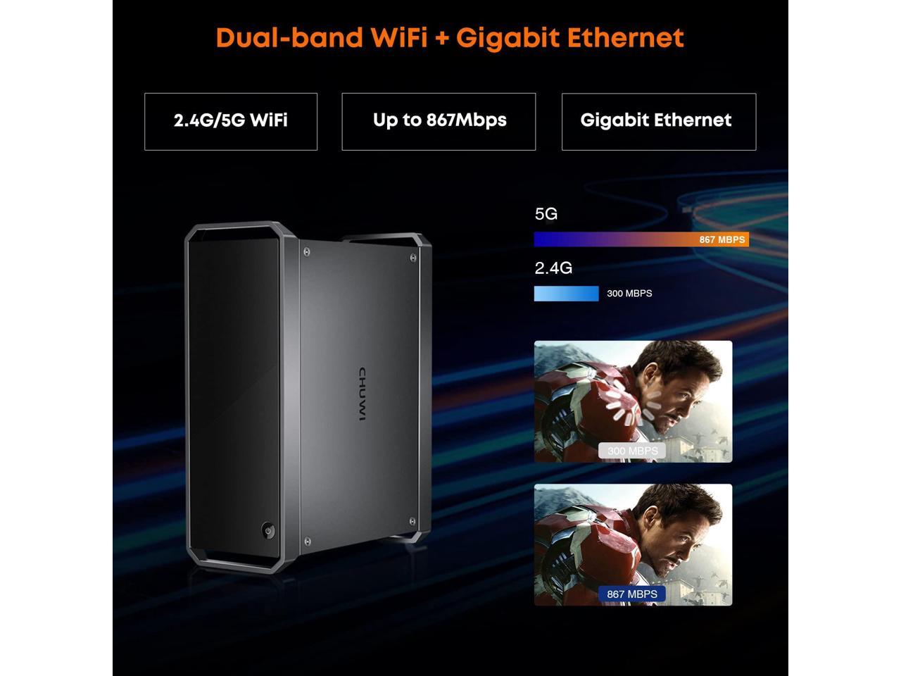 mini-computer includes an RJ45 Gigabit network port, ensuring fast and