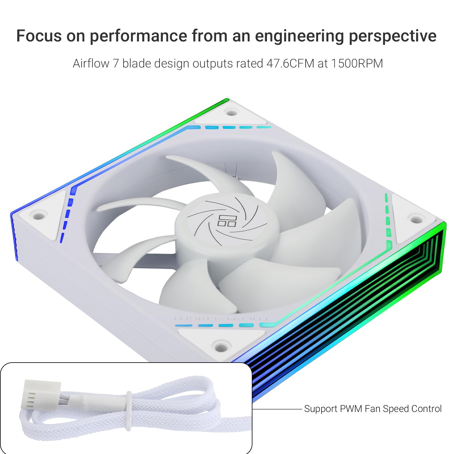 ARGB lines are distributed around the front of the fan, together with the
