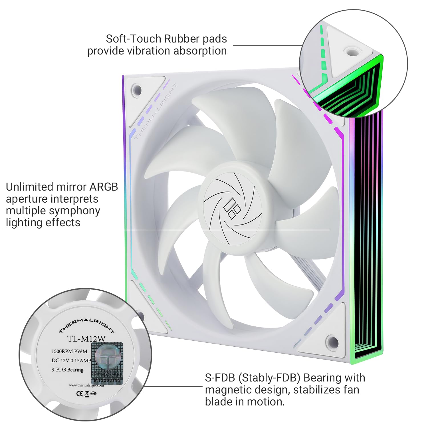 Thermalright TL-M12W Case Fan 120mm ARGB CPU Cooler - Silent PMW Fan - White
