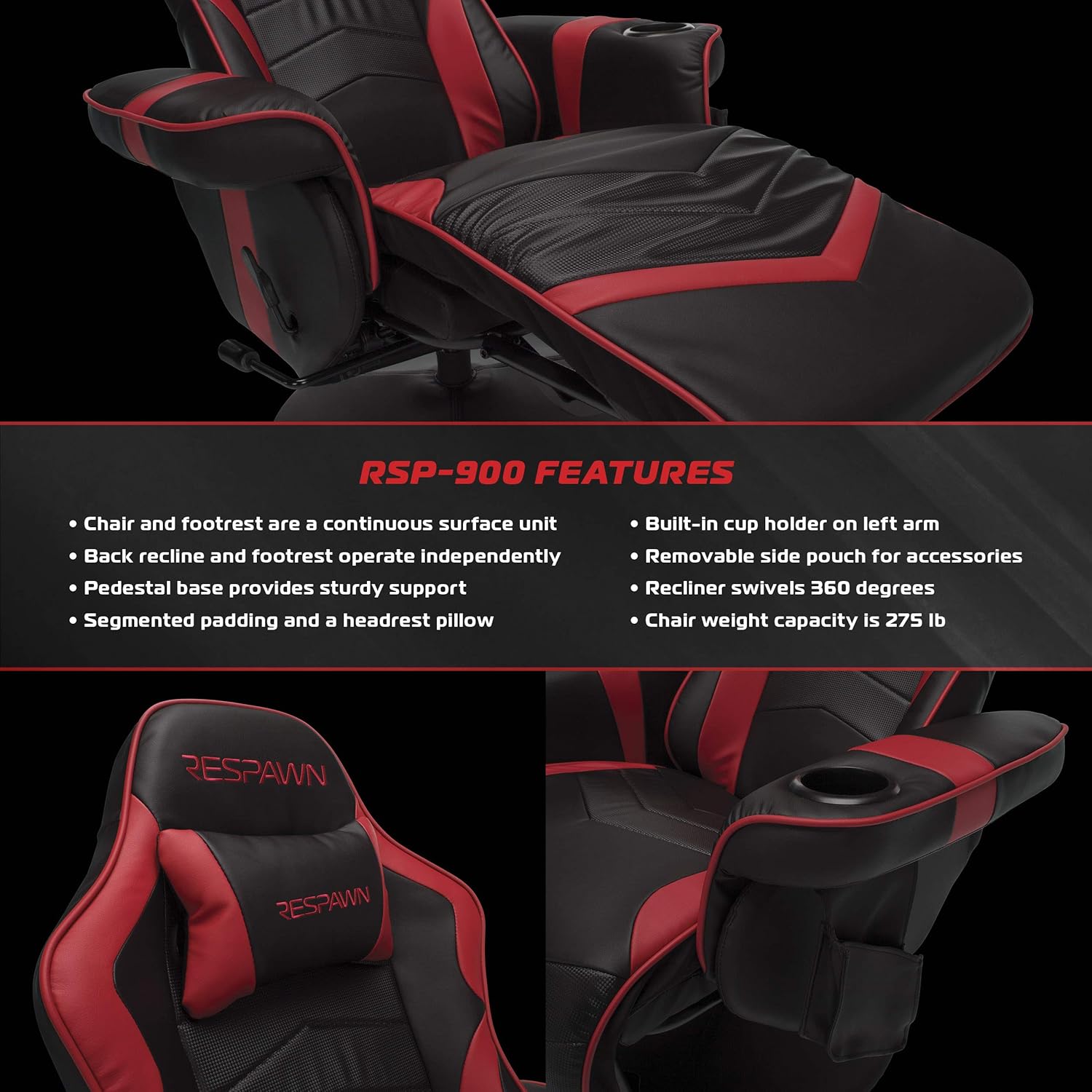 RESPAWN 900 Gaming Chair Recliner with Footrest & Cup Holder - Black & Red
