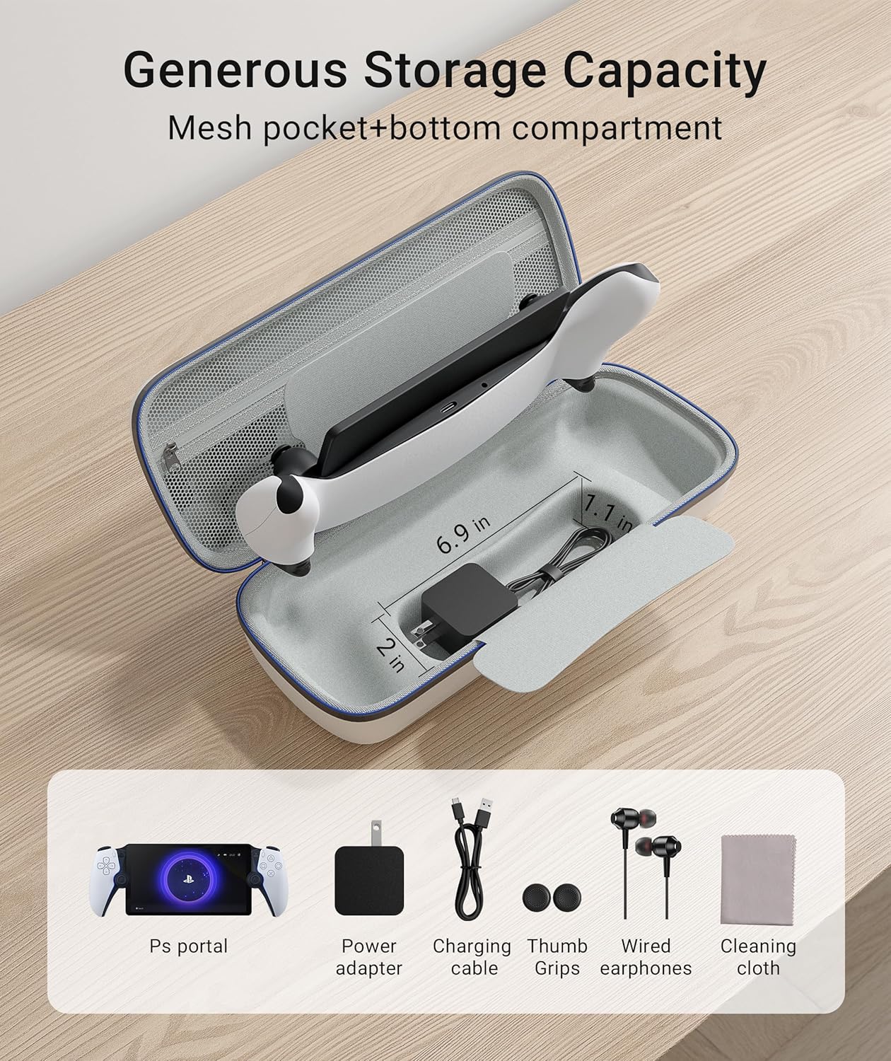 compatible with PS5 Portal and accessories, this carrying case maintains a