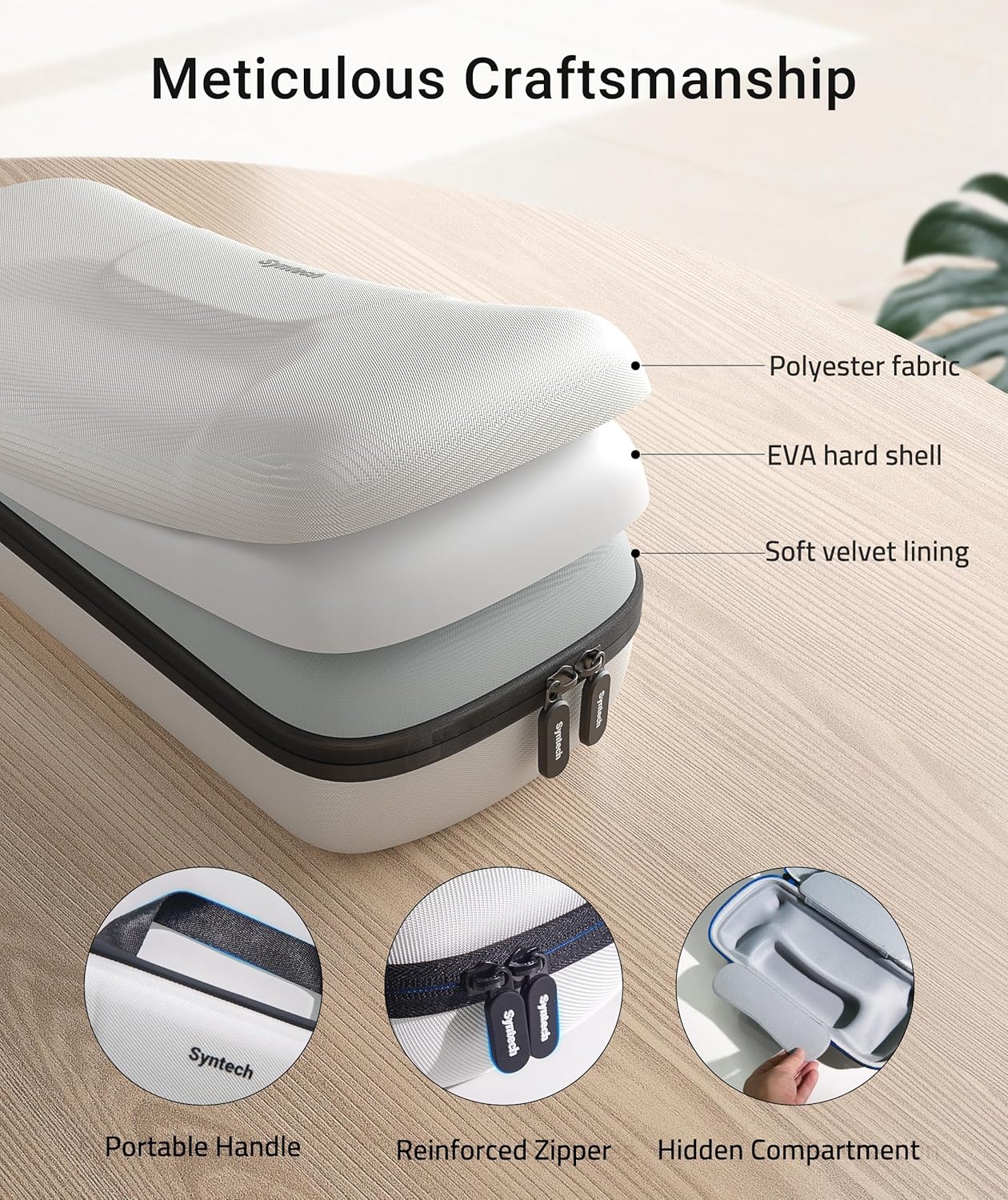 impacts, scratches, and water damage. The interior features a plush velvet