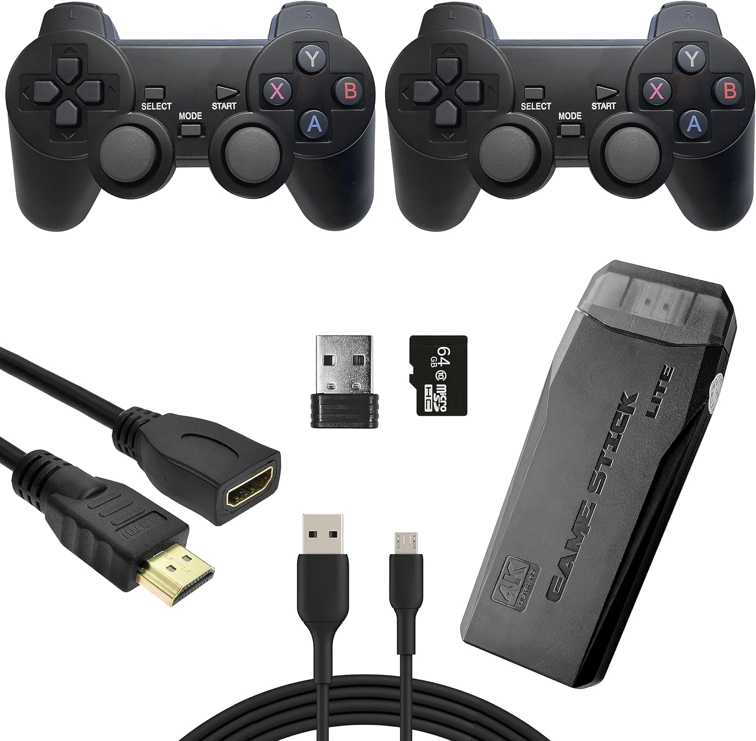 Retrostick Video Game Stick & Emulator - Built-In 20000+ Games (64GB Memory Card) - 4K HDMI Output + 2x Wireless Controllers