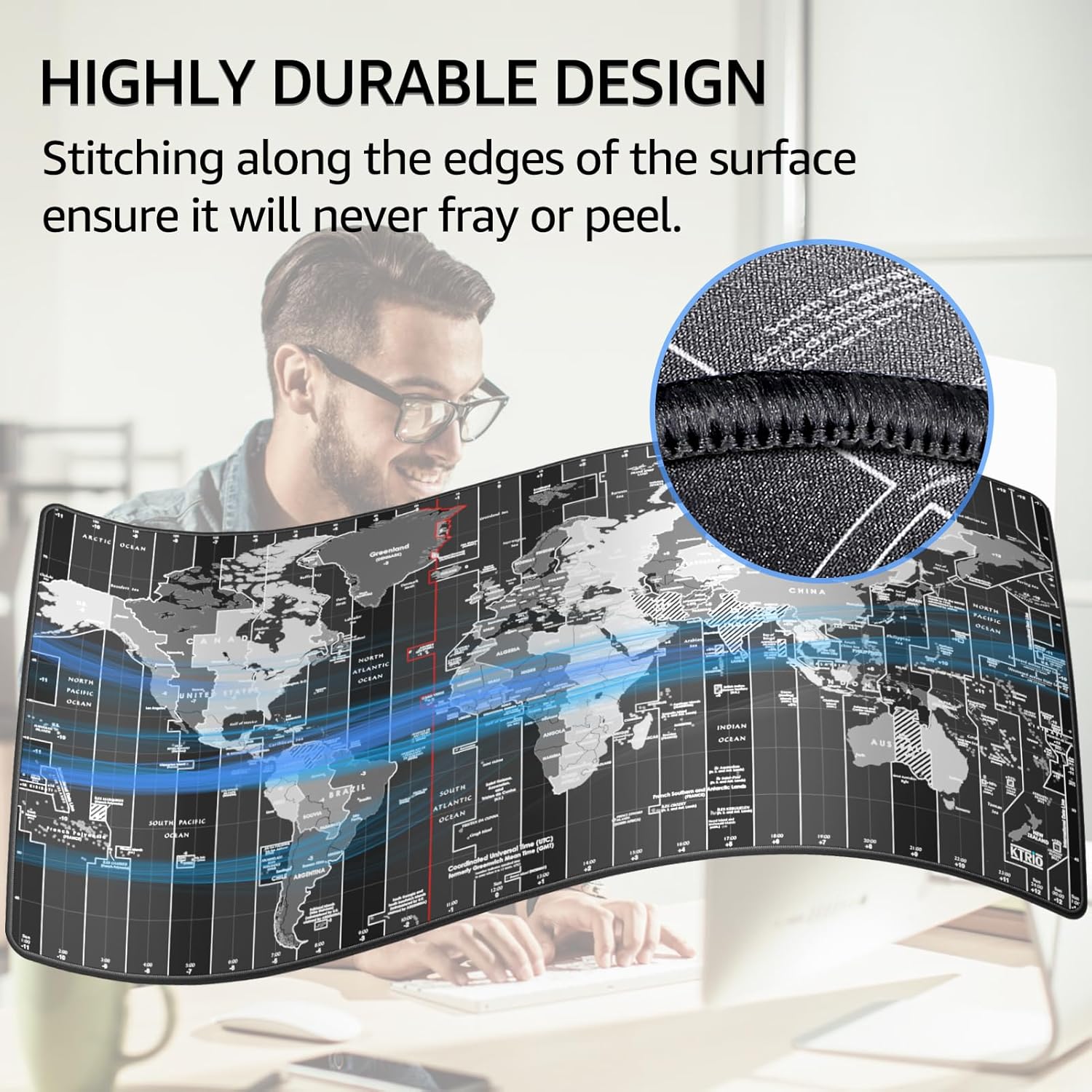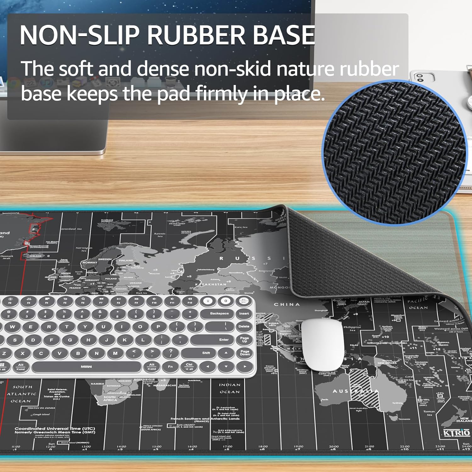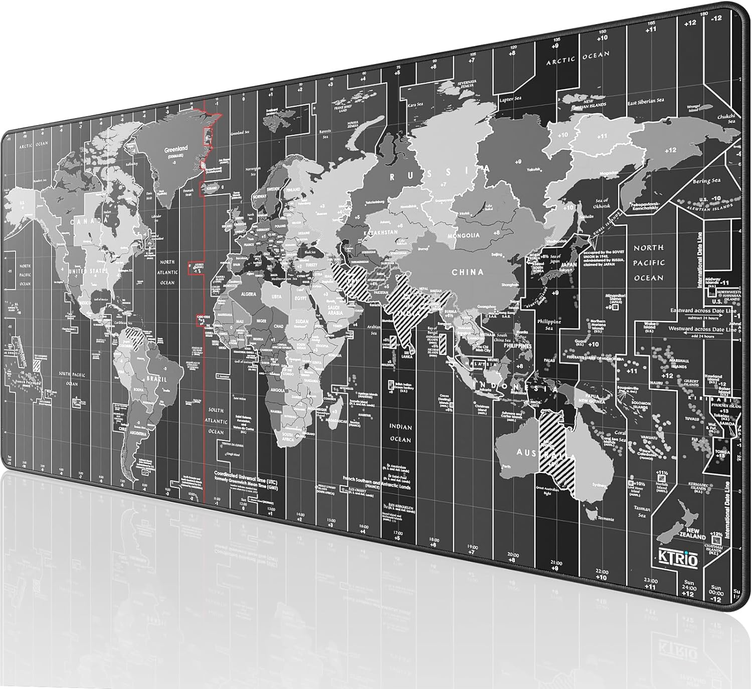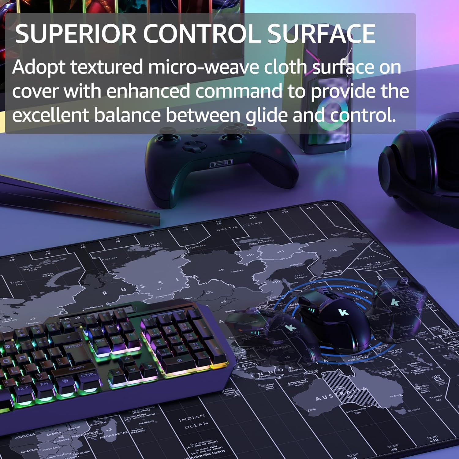 KTRIO Large Extended Gaming Mouse Pad with Stitched Edges, Non-Slip Base - World Map Design - 31.5x15.7"