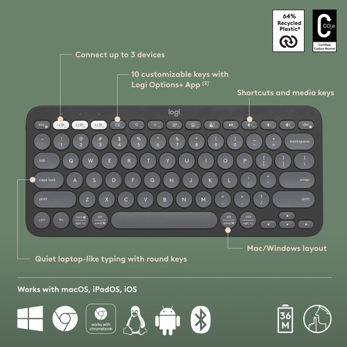 Logitech Pebble Keys 2 K380S Wireless Keyboard - Graphite